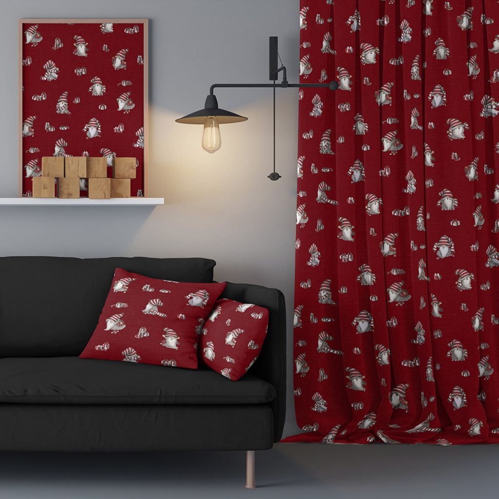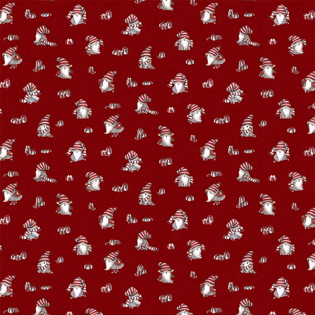 Ett gulligt mönster med tomtar. Mönstret är tryckt på Arvidssons klassiska bomullsvara. Passar lika bra i hemmet som på kontoret. Bild nr. 2 visar mönstret på hela tygets bredd.