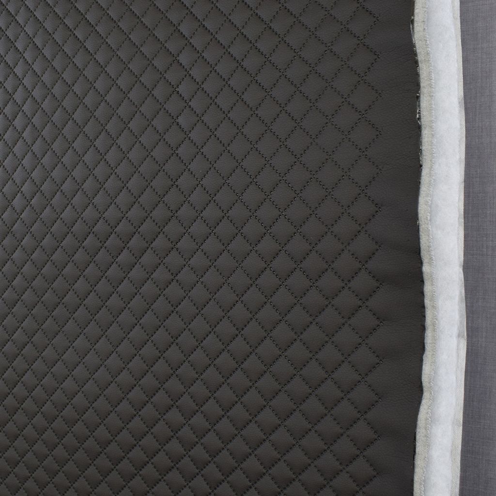 Svart diagonalrutigt fuskskinn med vadderad baksida. Rutorna är 2x2cm.
