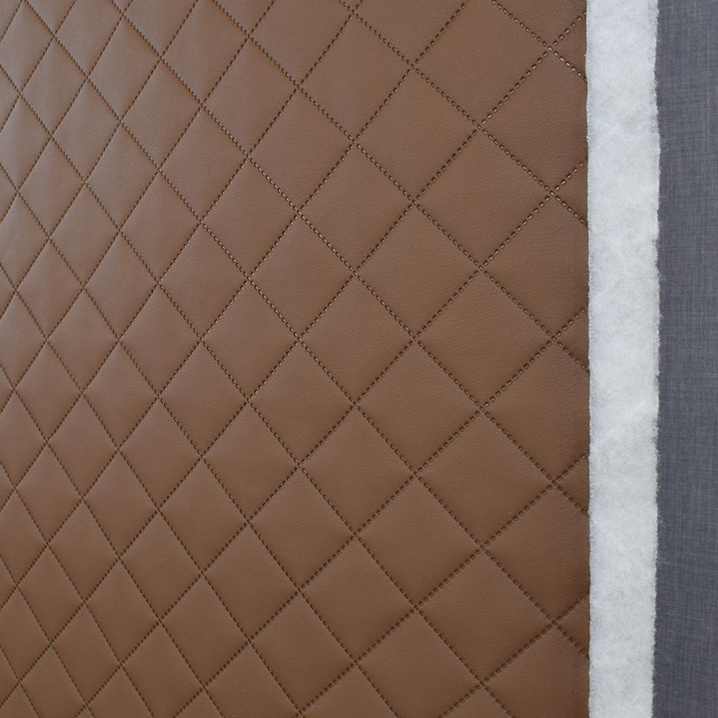 Brun diagonalrutigt fuskskinn med stora rutor och vadderad baksida. Rutan är ca 5x5cm