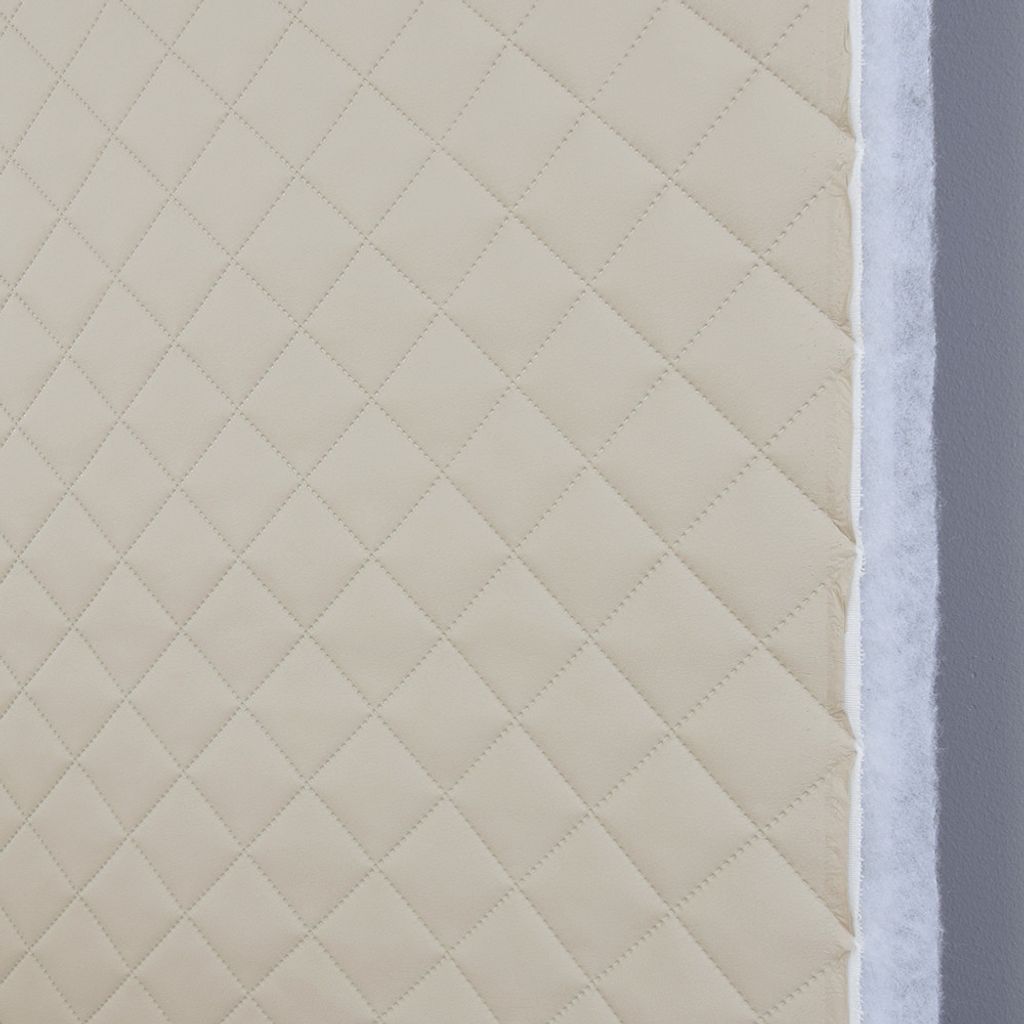 Ljusbeige diagonalrutigt fuskskinn med vadderad baksida.