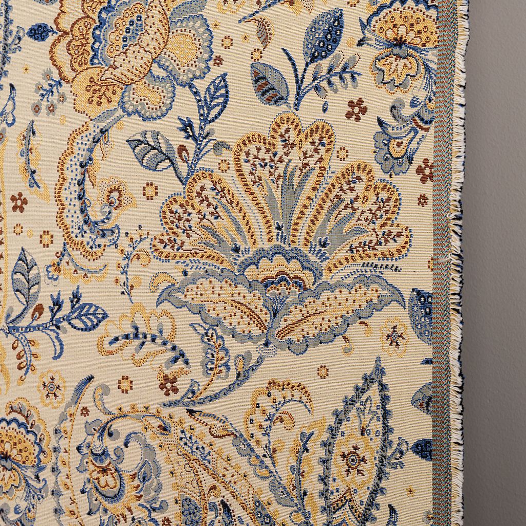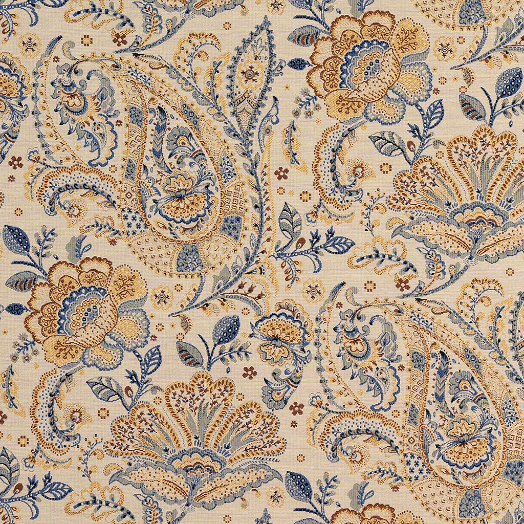 Noori gobeläng är ett elegant möbeltyg med klassiskt paisleymönster i harmoniska toner av blått, beige och ockra. Ett tidlöst val som ger rummet en sofistikerad och varm känsla.