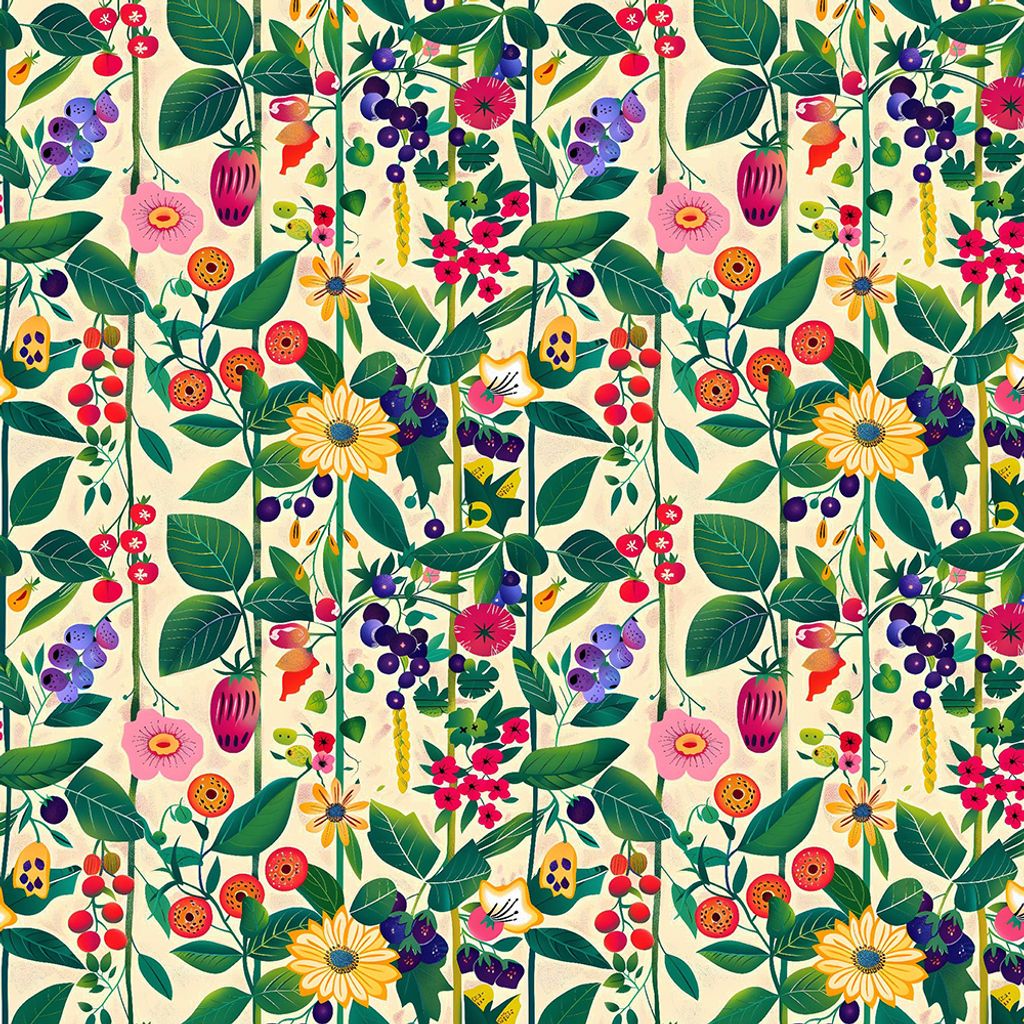 Nordisk Flora tyg - skandinaviska bär och blommor
