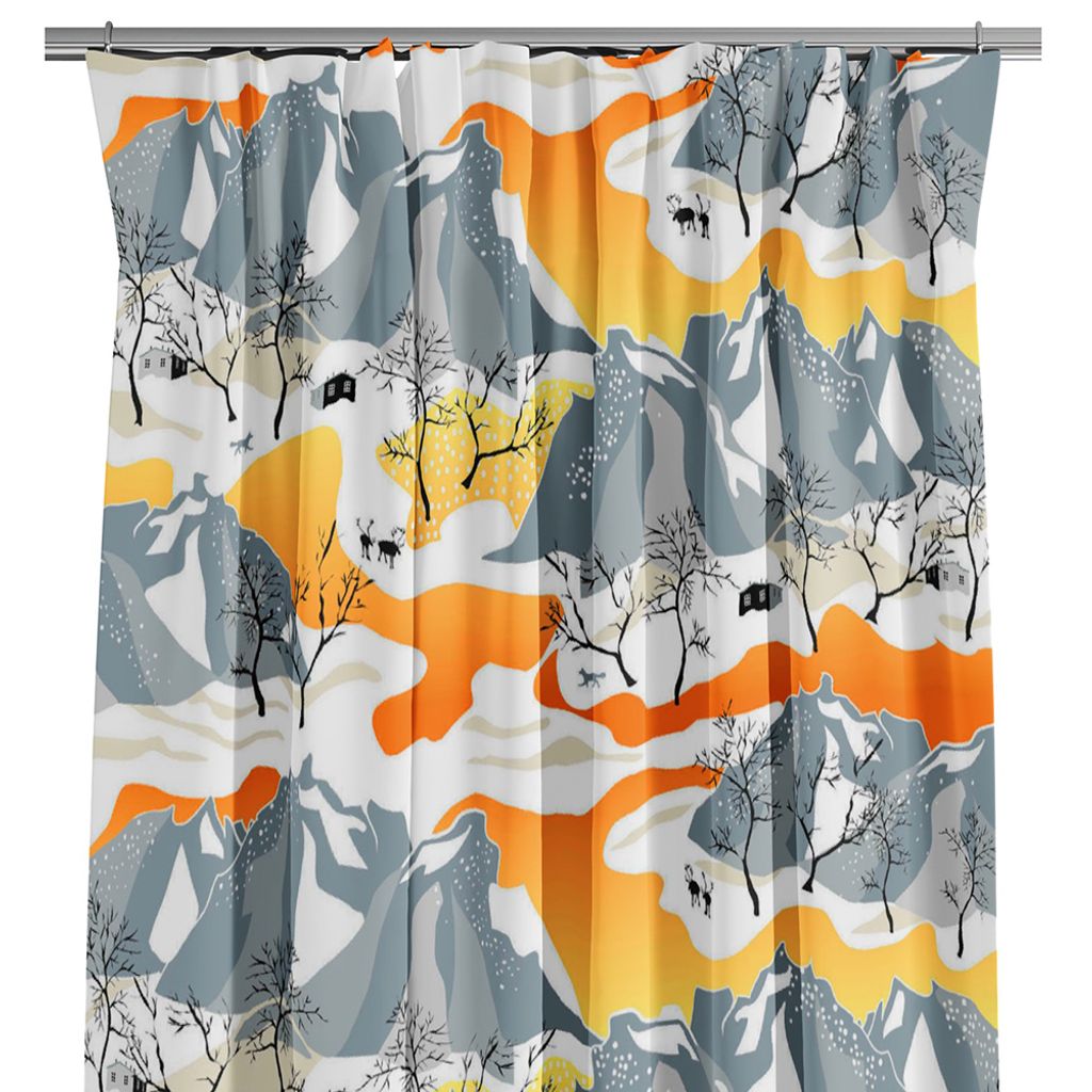 Inspirationen till dessa gardiner kommer från Norrlands lite karga och otillgängliga natur med berg och dalar.