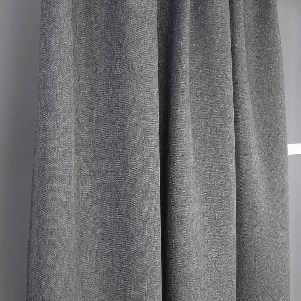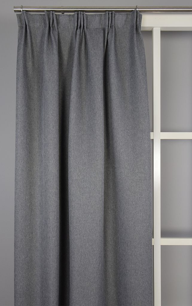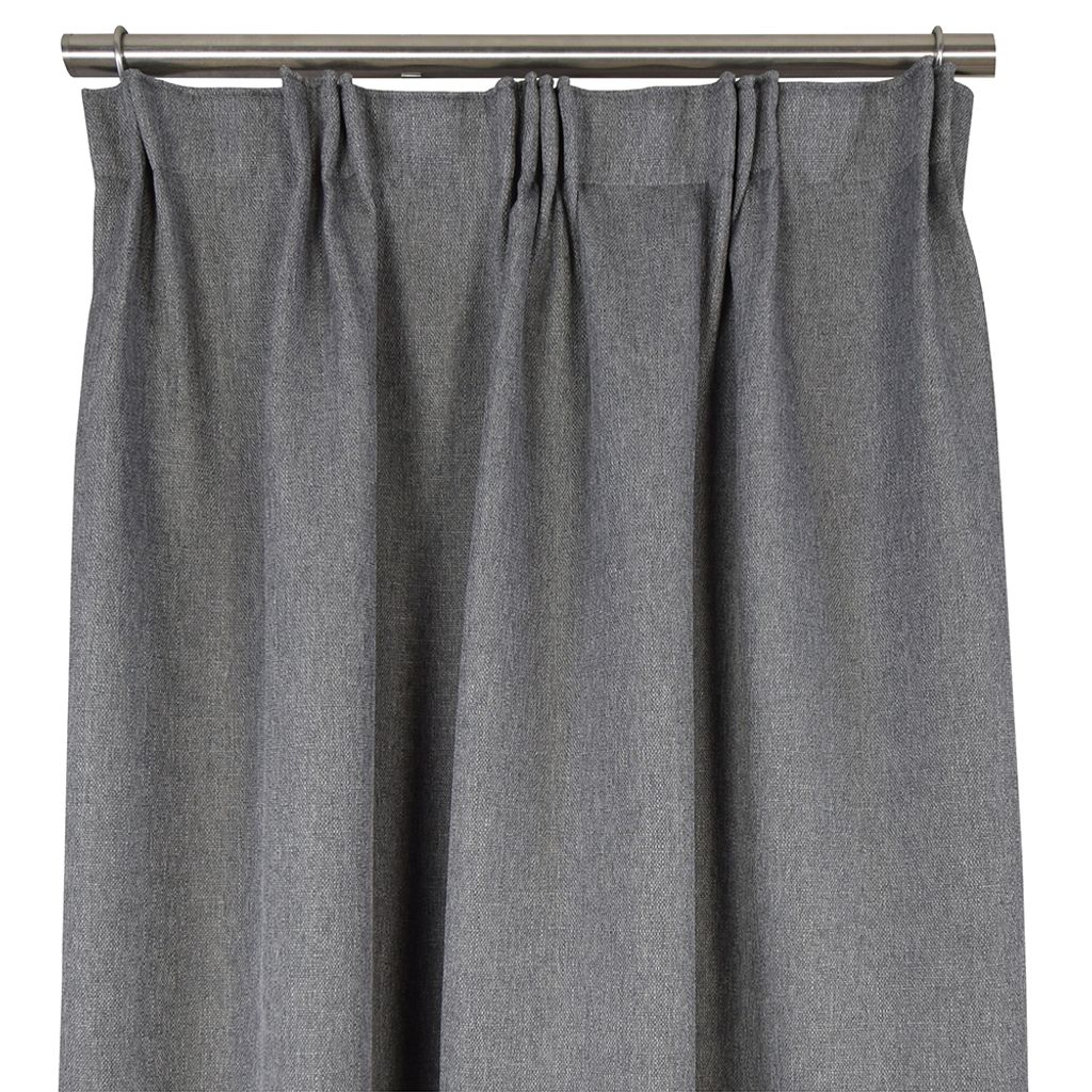 Grå mörkläggningsgardiner med snygg struktur och härligt fall, 80% mörkläggande.