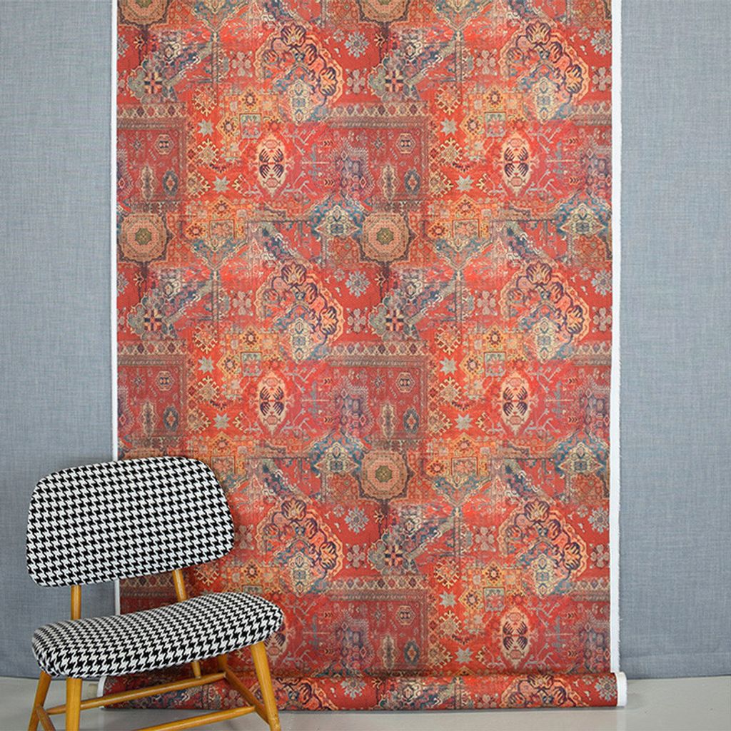 Tyg på metervara för gardiner och inredning med motiv av orientaliska mattor.