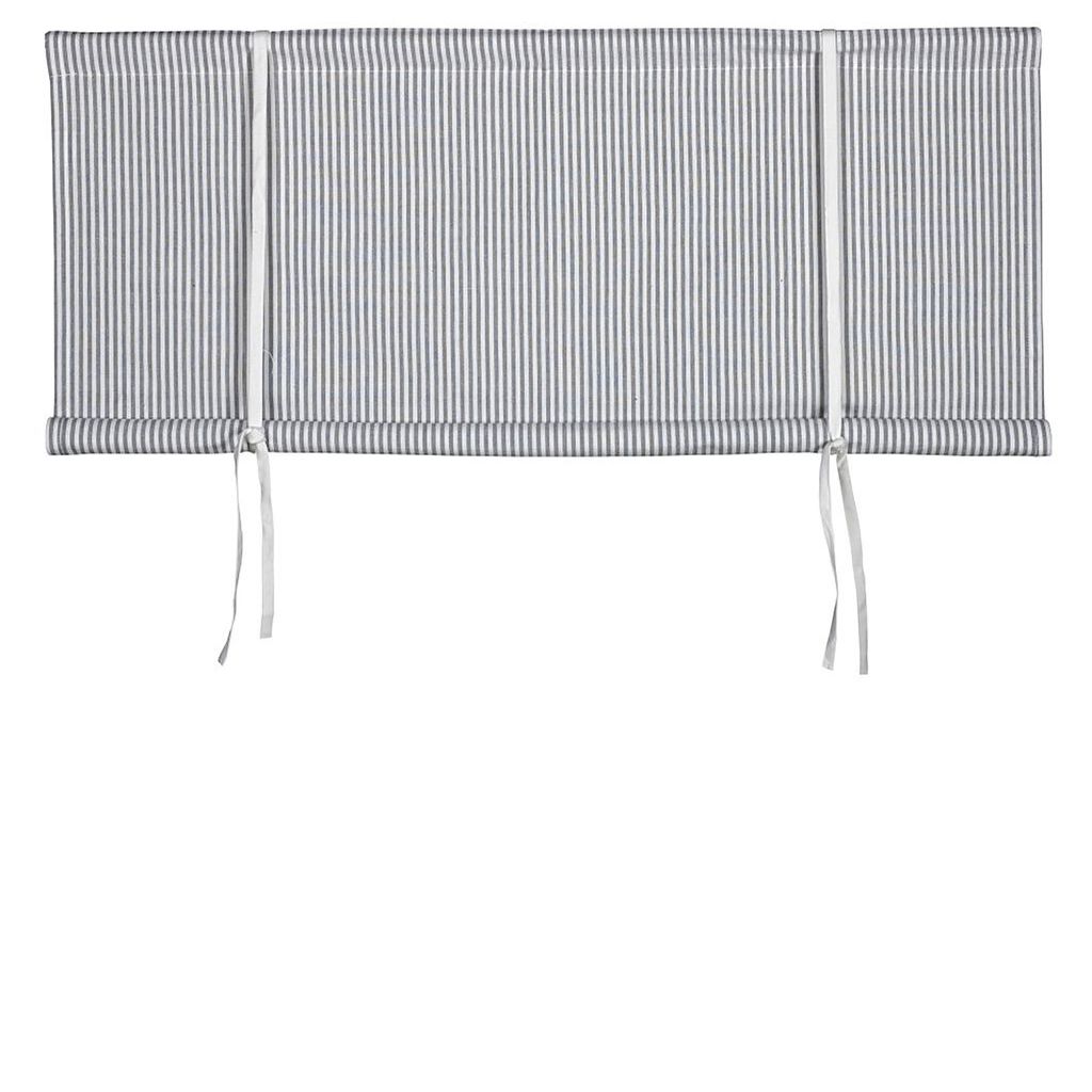 Vacker gammeldags hissgardin eller rullkappa med vita och grå ränder.