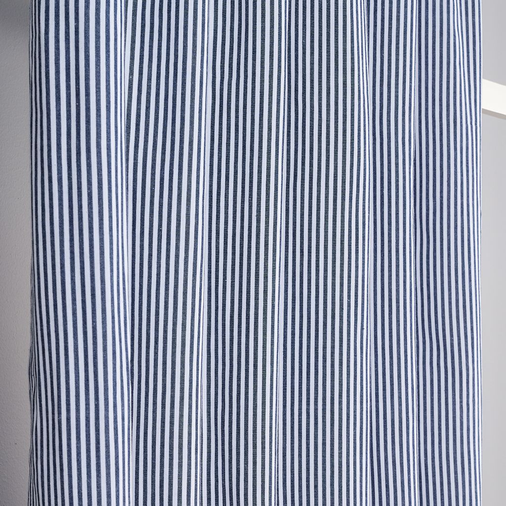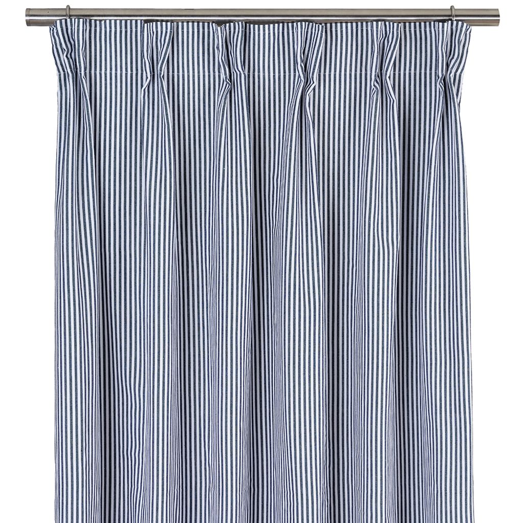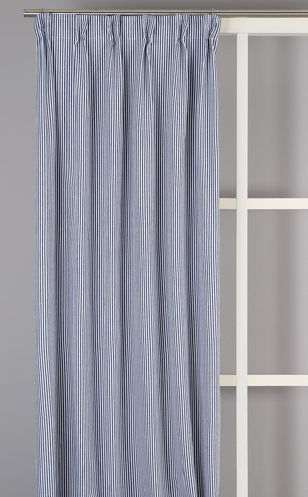 Tillverkad i 100% bomull och vävd med omsorg för att hålla länge. Oskar Navy randig gardin är ett självklart val för dig som söker klass, funktionalitet och ett inredningsobjekt som aldrig går ur tiden.
