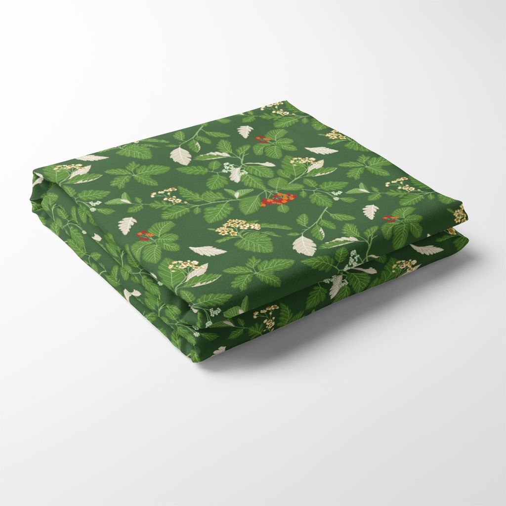 Oxel grön bordsduk bjuder in naturens ro i ditt hem. Med sitt frodiga bladverk, vita blommor och röda bär skapar den en tidlös och levande känsla – perfekt för både vardag och fest. Duken finns i 4 olika storlekar.