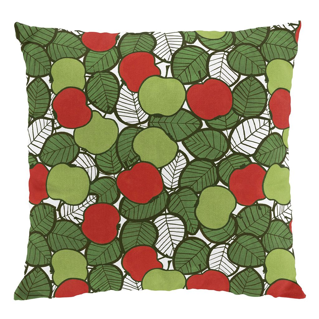 Härligt mönster med gröna blad och röda äpplen. Fodralet är 47x47cm med ett blixtlås i nederkant.