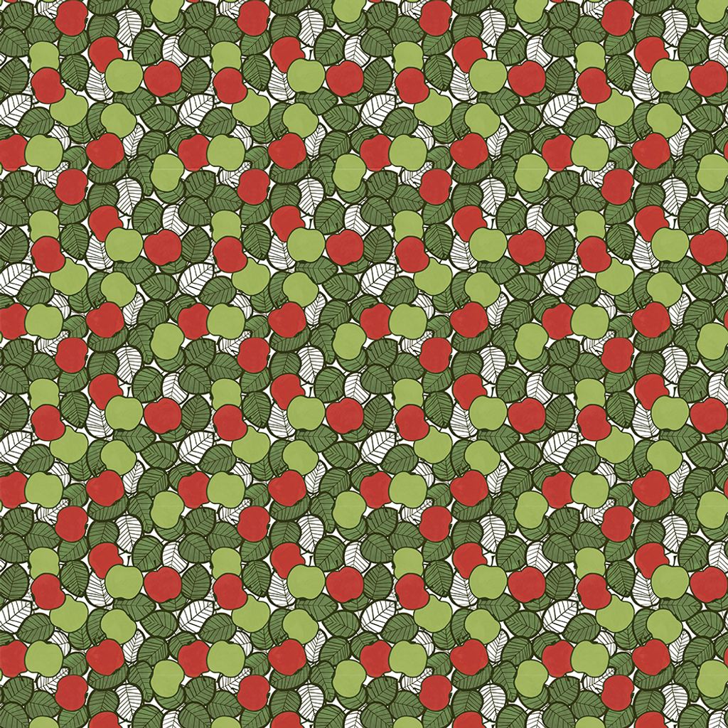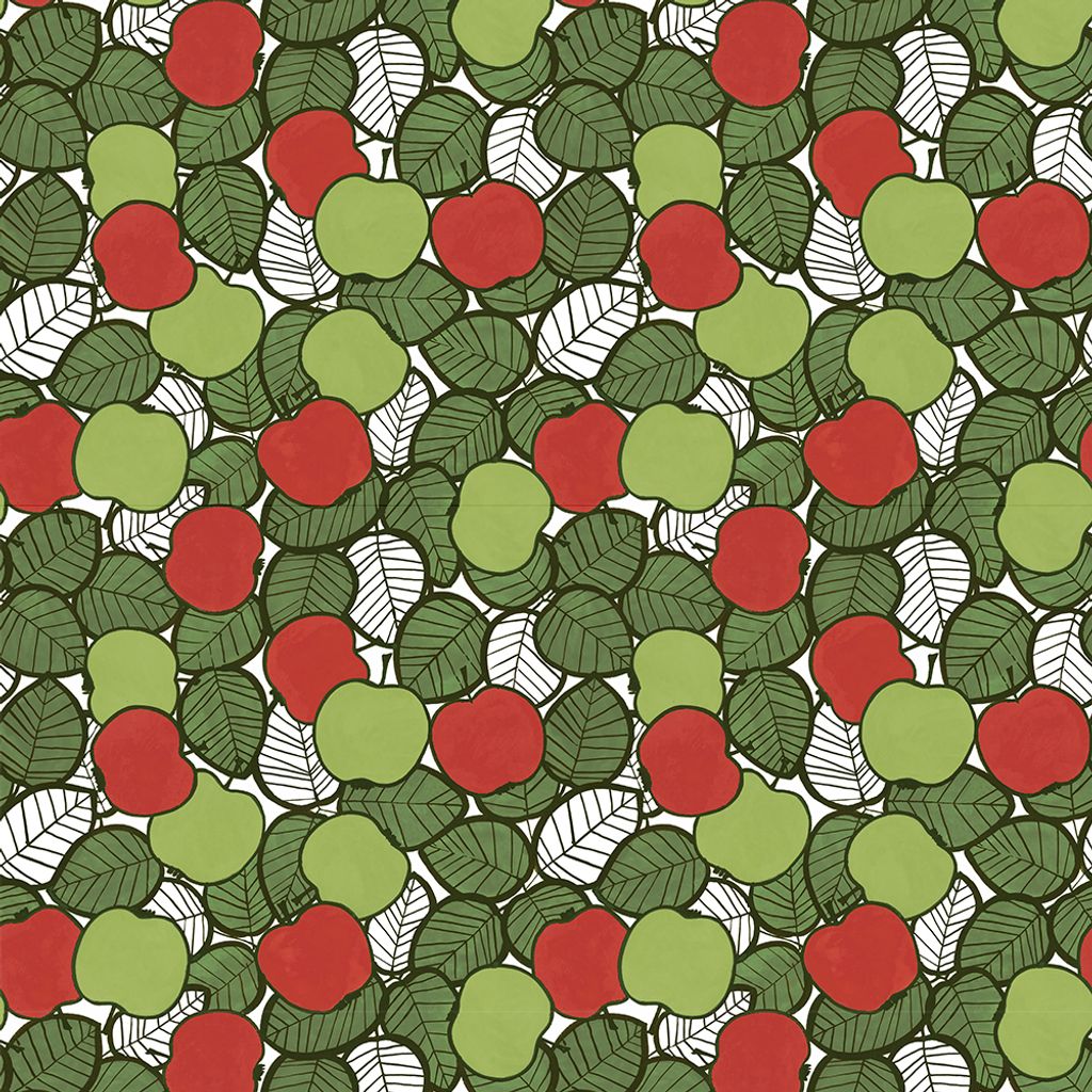 Härligt mönster med grön - vita blad, röda och gröna äpplen. Gardin och inredningstyg för hemmet och kontoret.
