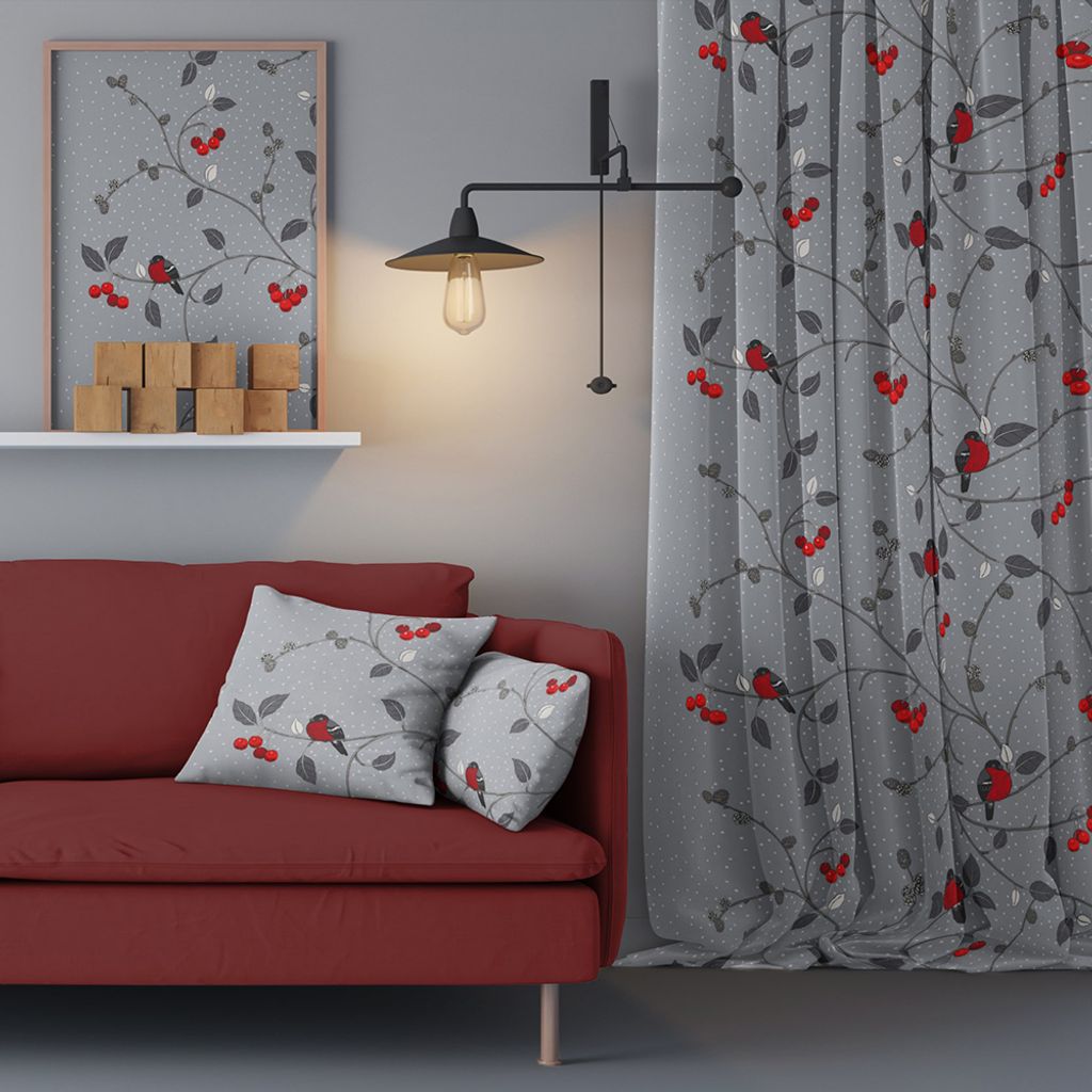 Paradisäpplen grå gardiner