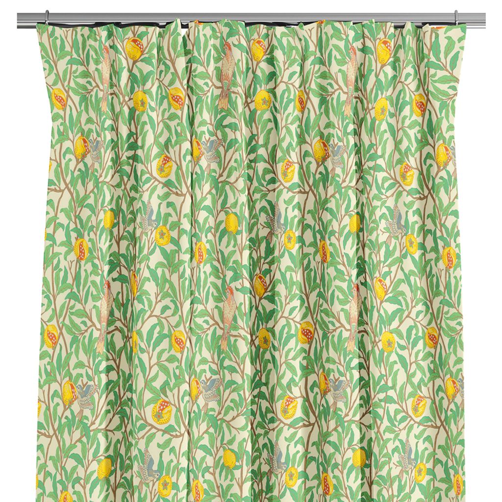 Låt naturen flytta in med Paradisträd – en gardin inspirerad av frodiga trädgårdar och exotiska fåglar. Det täta, slingrande grenverket med saftiga frukter och detaljerade fåglar ger en livfull men harmonisk känsla till ditt hem. Ouppfållade med overlocksöm nedtill.