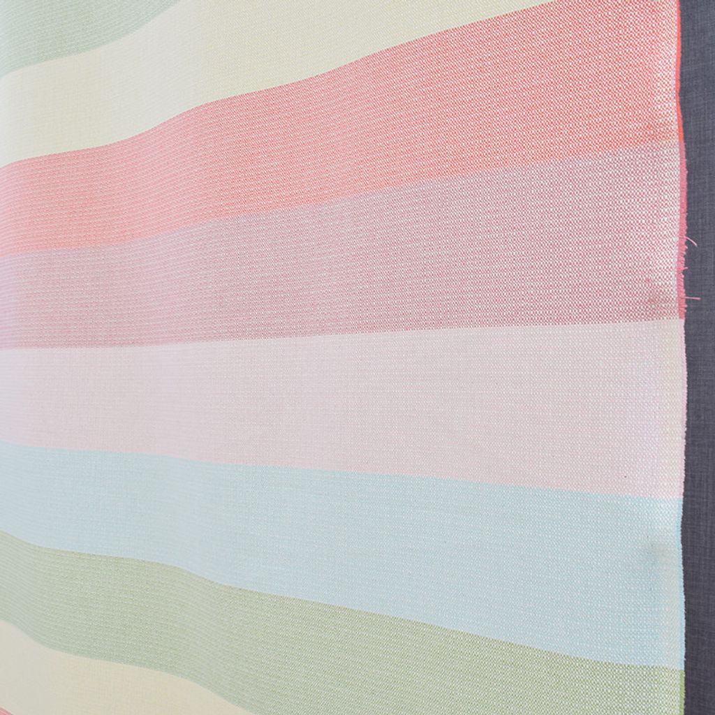 Med motiv av pastellfärgade ränder och något struktur i väven.