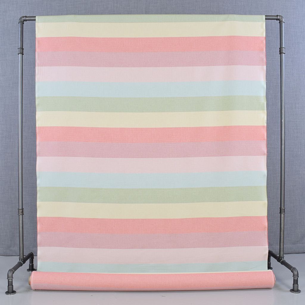Tyg på metervara för gardiner och inredning med pastellfärgade ränder.