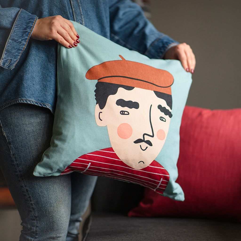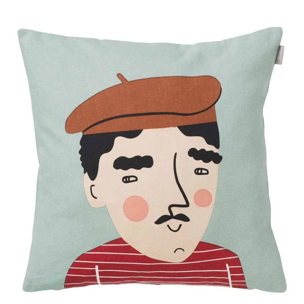 Säg bonjour till Pierre – den poetiska konstnären i Spiras älskade kompiskollektion. Detta handtryckta kuddfodral fångar Pierres säregna personlighet i varje detalj: hans fundersamma blick, ikoniska basker och randiga tröja för tankarna direkt till ett parisiskt kvarter.