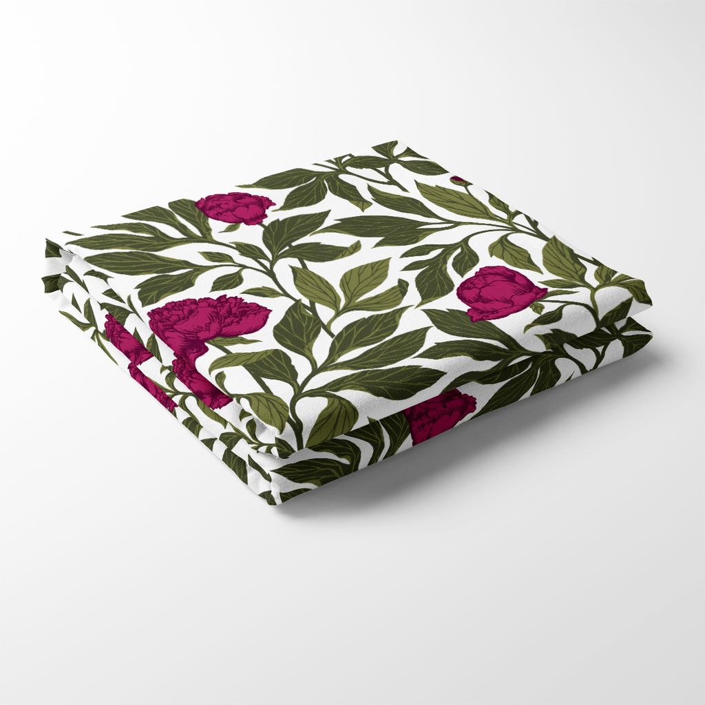 Bordsduk med mörkrosa Pioner ett elegant och romantiskt mönster som fångar skönheten hos pionblommor i full blom och grönskande blad.