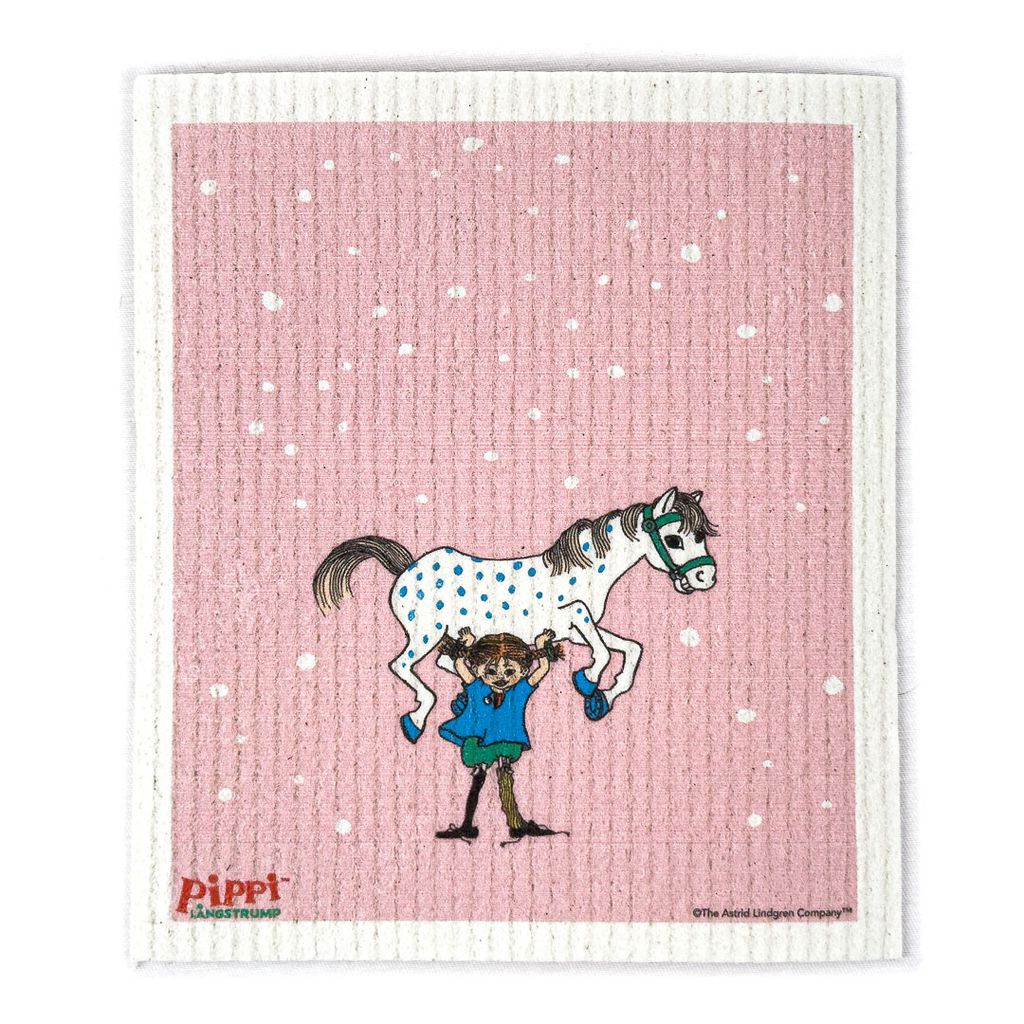 En rosa charmig disktrasa med Pippi Långstrump som lyfter Lilla Gubben – perfekt som gåva eller för att pigga upp vardagen. Tillverkad av 100% biologiskt nedbrytbara material – 70% FSC-certifierad cellulosa och 30% bomull. 17×20 cm.