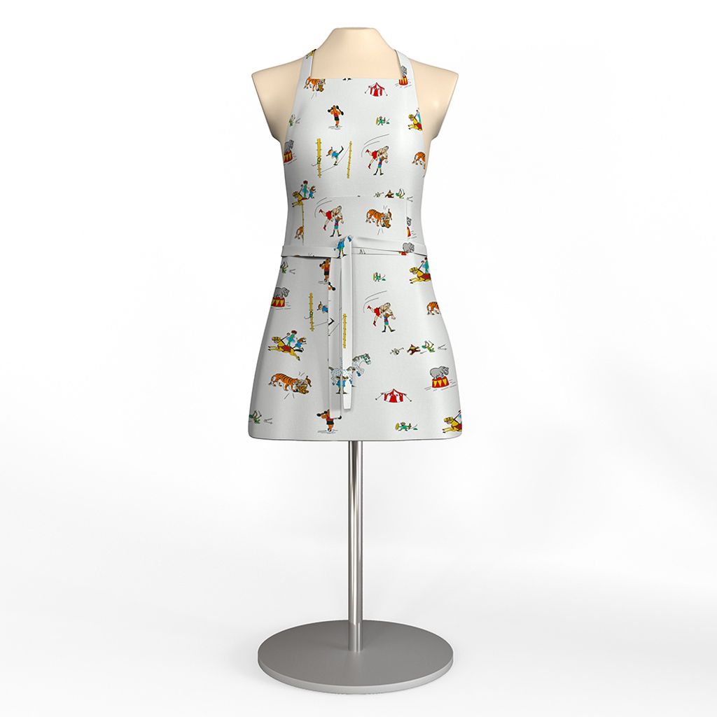 Det här barnförklädet från Arvidssons Textil har ett härligt cirkusmönster med Pippi, hästar och vänner – tryckt på en offwhite botten. En perfekt present till det kreativa barnet som gillar att hjälpa till i köket eller skapa med färg och form.