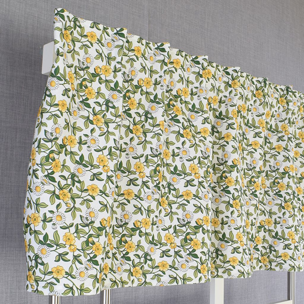 Gardinkappa på metervara. Prästkrage gul kappa på metervara med offwhite botten och gula blommor och gröna bladKappan levereras ofållad i kanterna