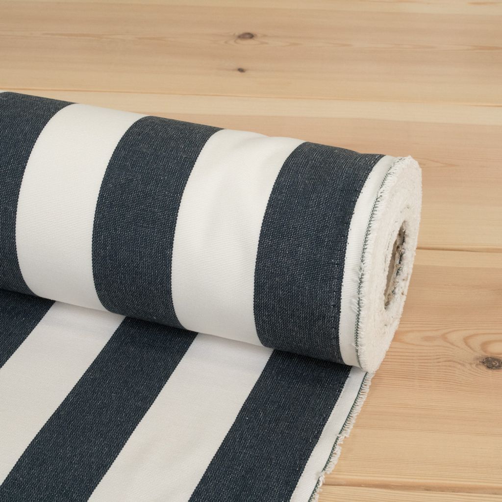 Blockrandigt tyg i mörkblått och offwhite med Martindale 35000. Ränderna är 4,5 cm. Passar både gardin och enklare möbel tapetsering. Perfekt att matcha med Newton, Dewon, Newport, Norwich och Harlow för en stilfull inredning.