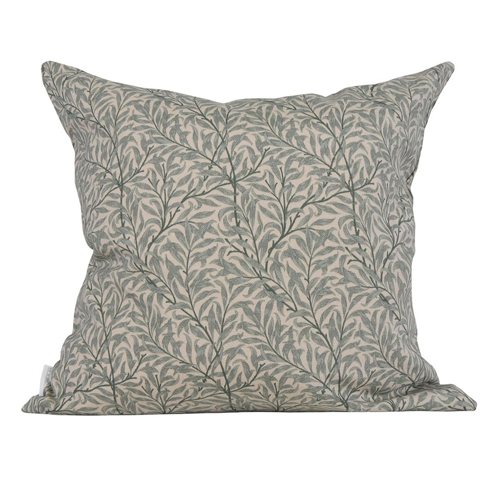 Kuddfodral med ett trendigt Morris motiv med blad rankor i mintgrön på beige botten.