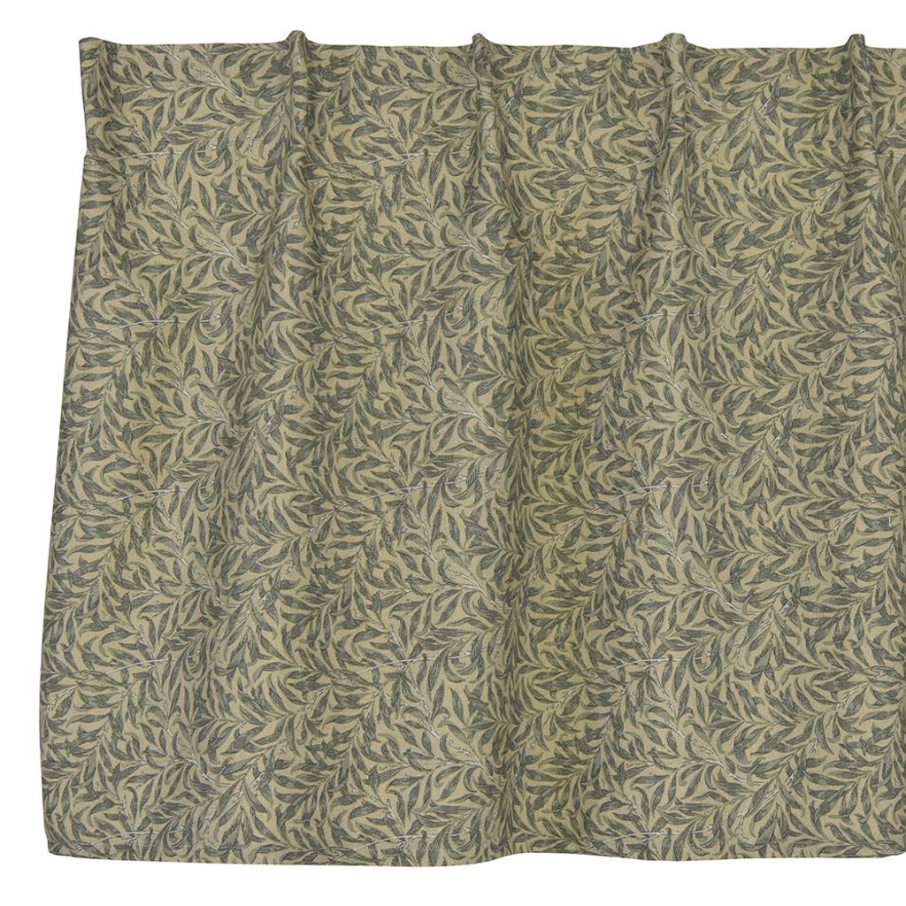 Gardinkappa med morris inspirerat mönster med olivgrön botten med blad i mörkgrönt och ljusgröna kvistar