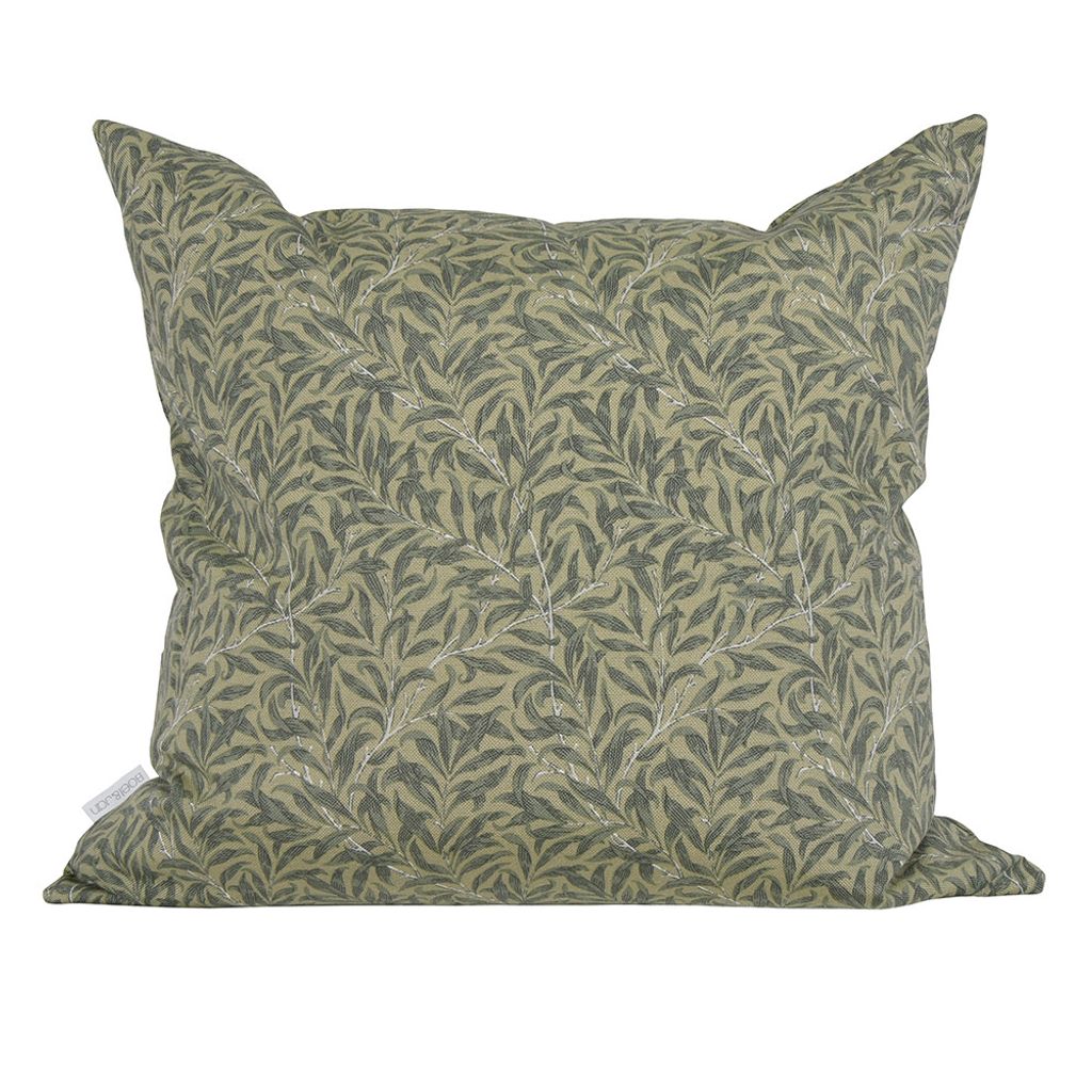 Kuddfodral med ett trendigt Morris motiv med blad rankor i mörkgrönt på grön botten.