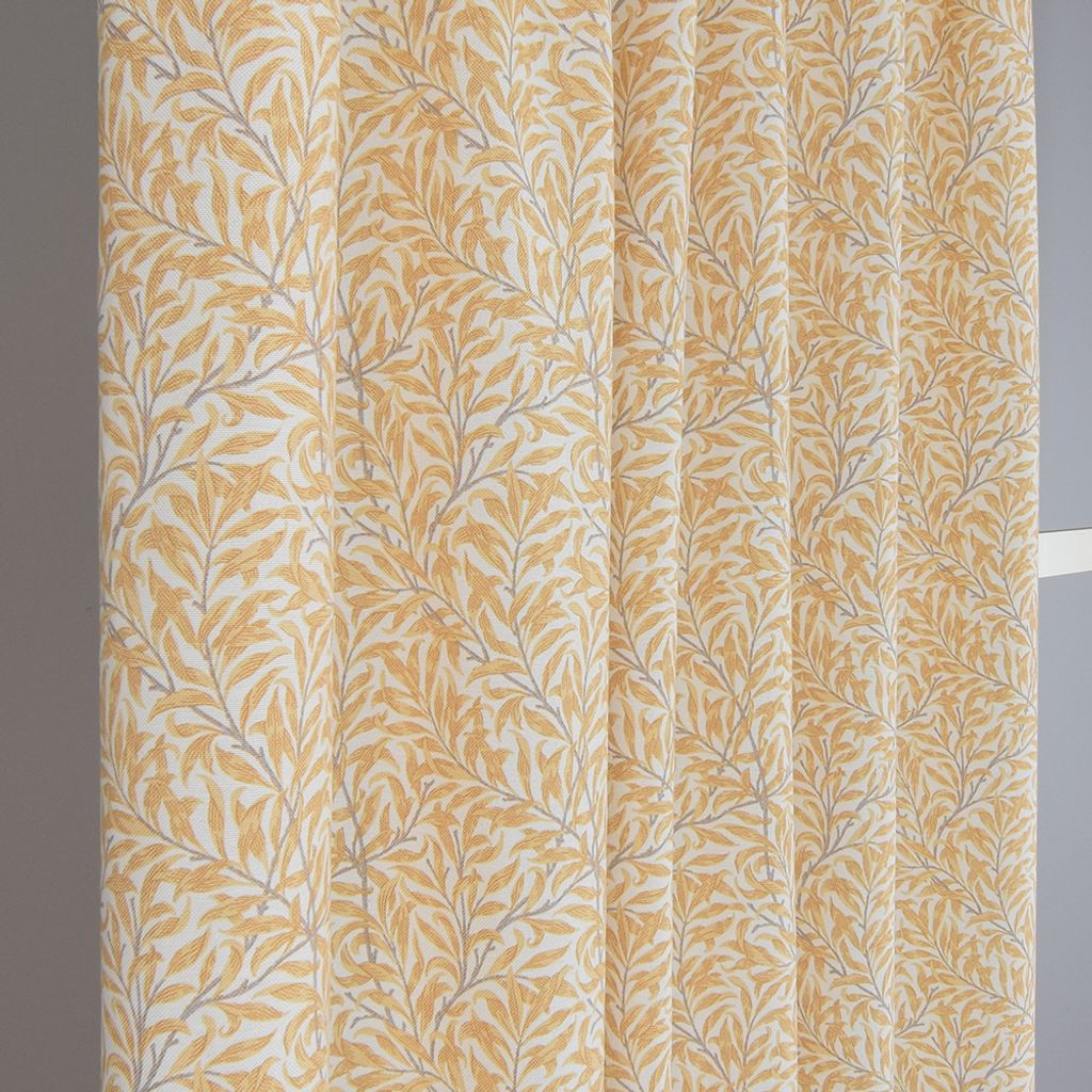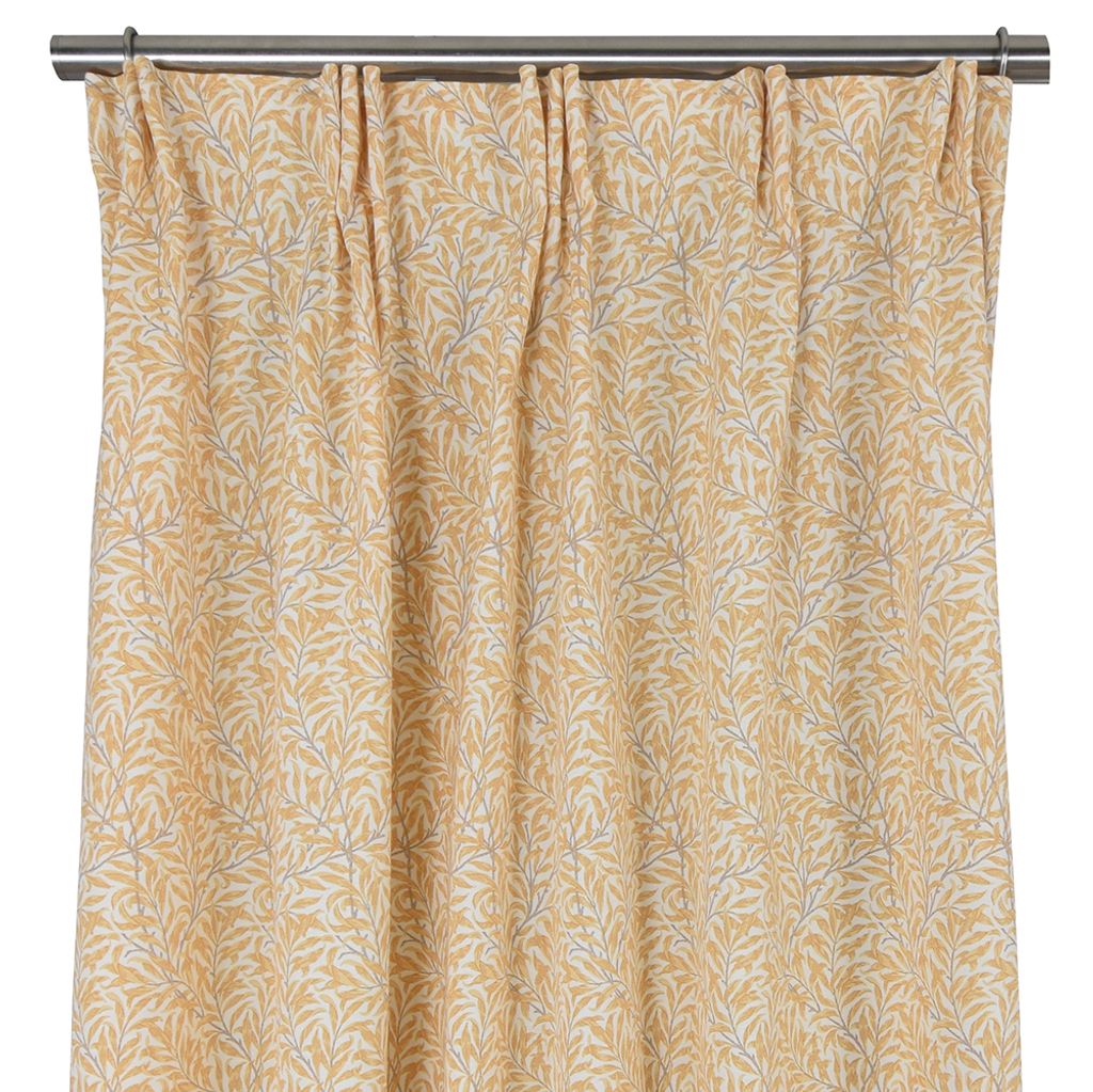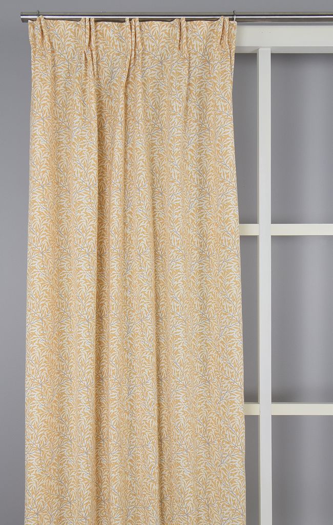 Beskrivning av Ramas gul gardiner med kvistar och blad