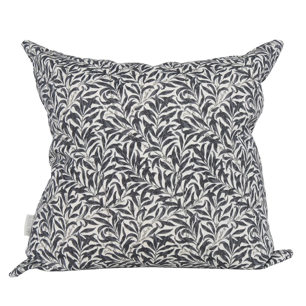 Kuddfodral med ett trendigt Morris motiv med blad rankor i mörkgrå på offwhite botten.