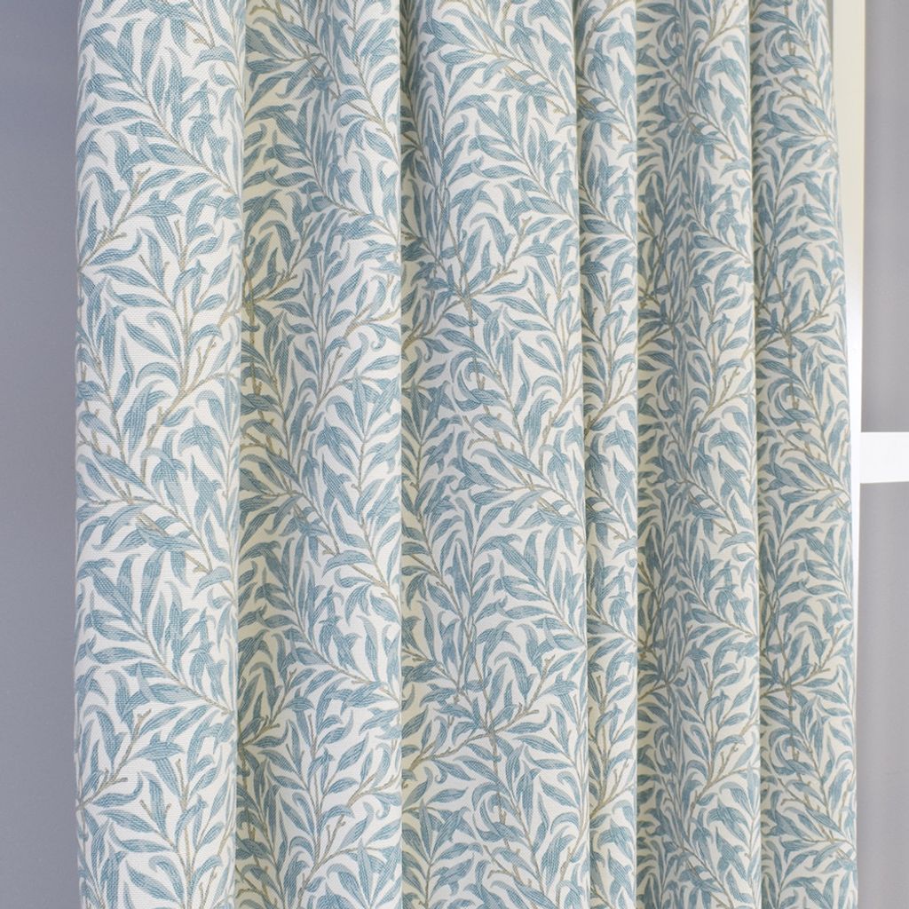 Beskrivning av Ramas turkos gardiner med kvistar och blad
