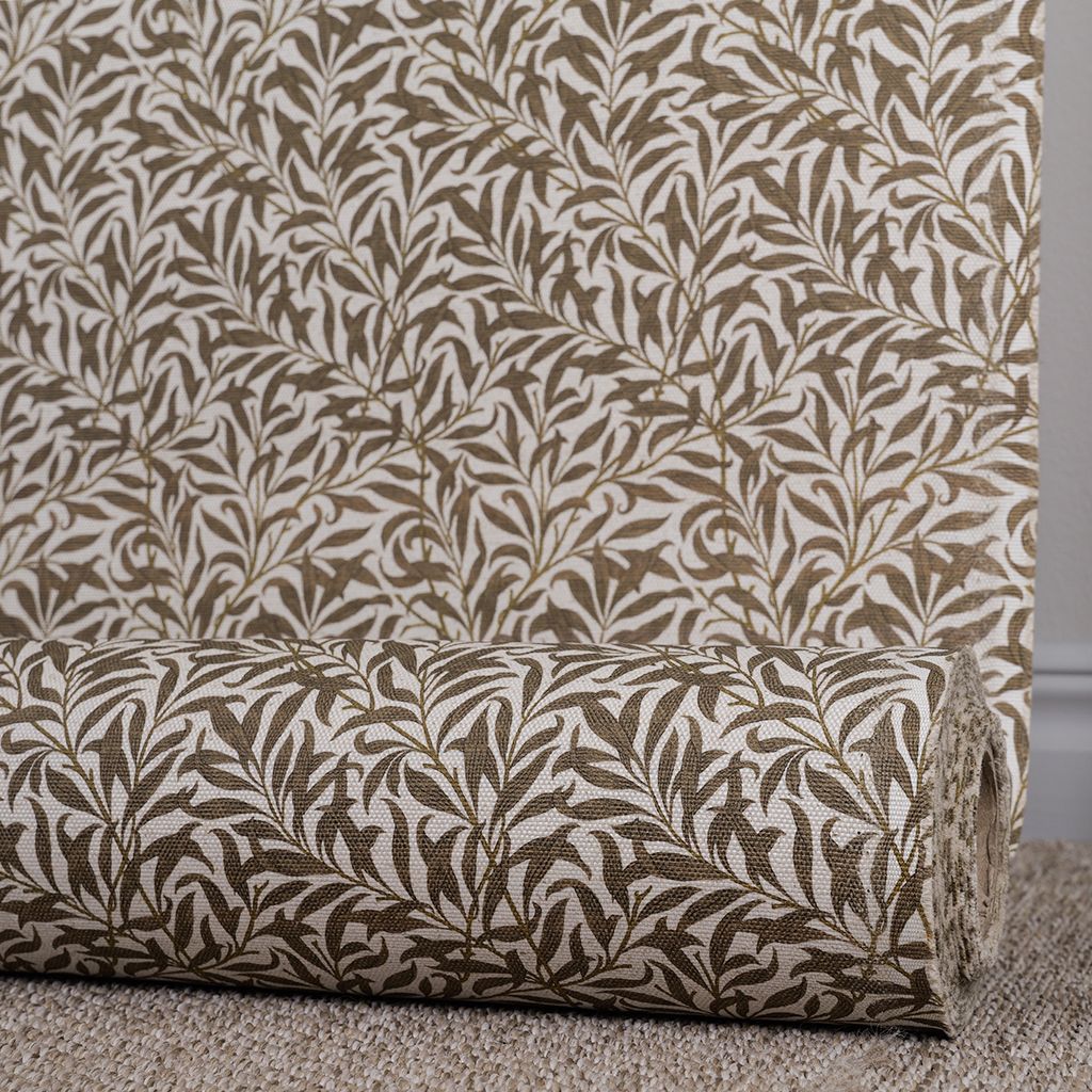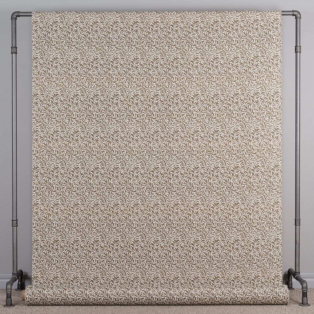 Tyger har bruna blad och rankor med gråbeige botten med Morris inspirerat mönster.