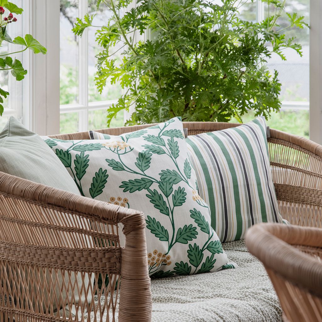 Tillverkat i 100% bomull kombinerar Renfana grön svensk designtradition med modern grafisk stil. Ett kuddfodral som bjuder in naturen i hemmet – året runt.