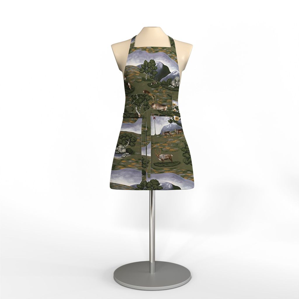 Förkläde sytt i Arvidssons fina bomullskvalité. Mönster med en vandrande renarna.