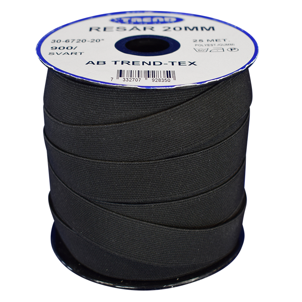 Hej. Jag skulle behöva 140 meter resårband, svart eller annan färg (ej vitt) b= 20 mm