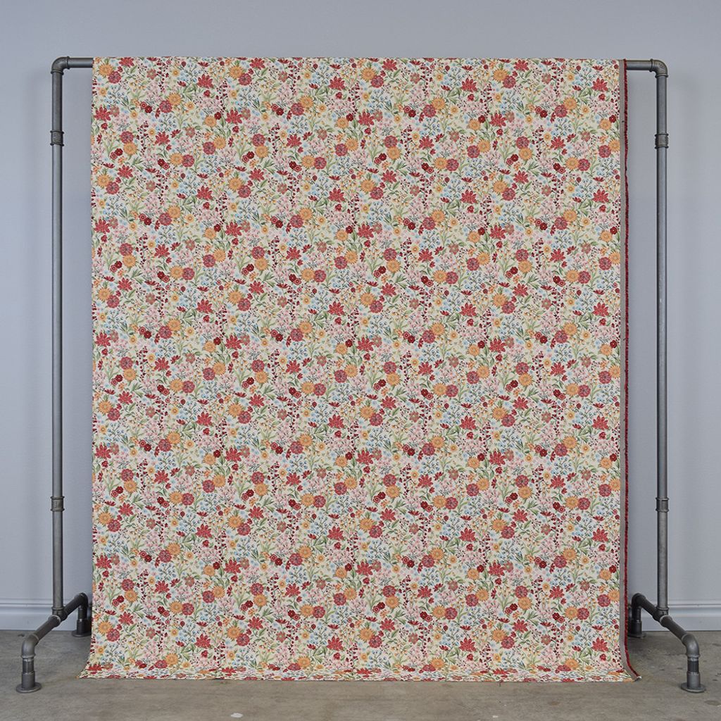 Småmönstrat möbeltyg med vackra blommor