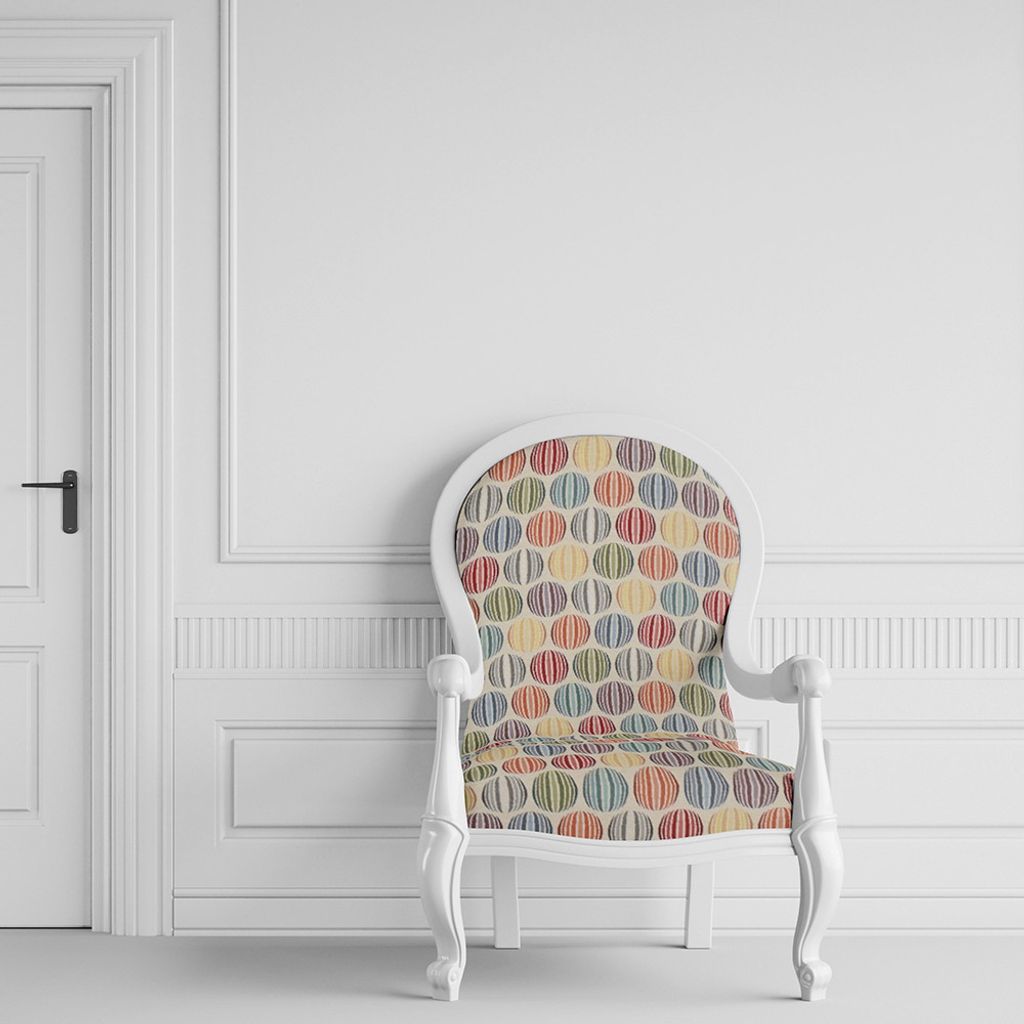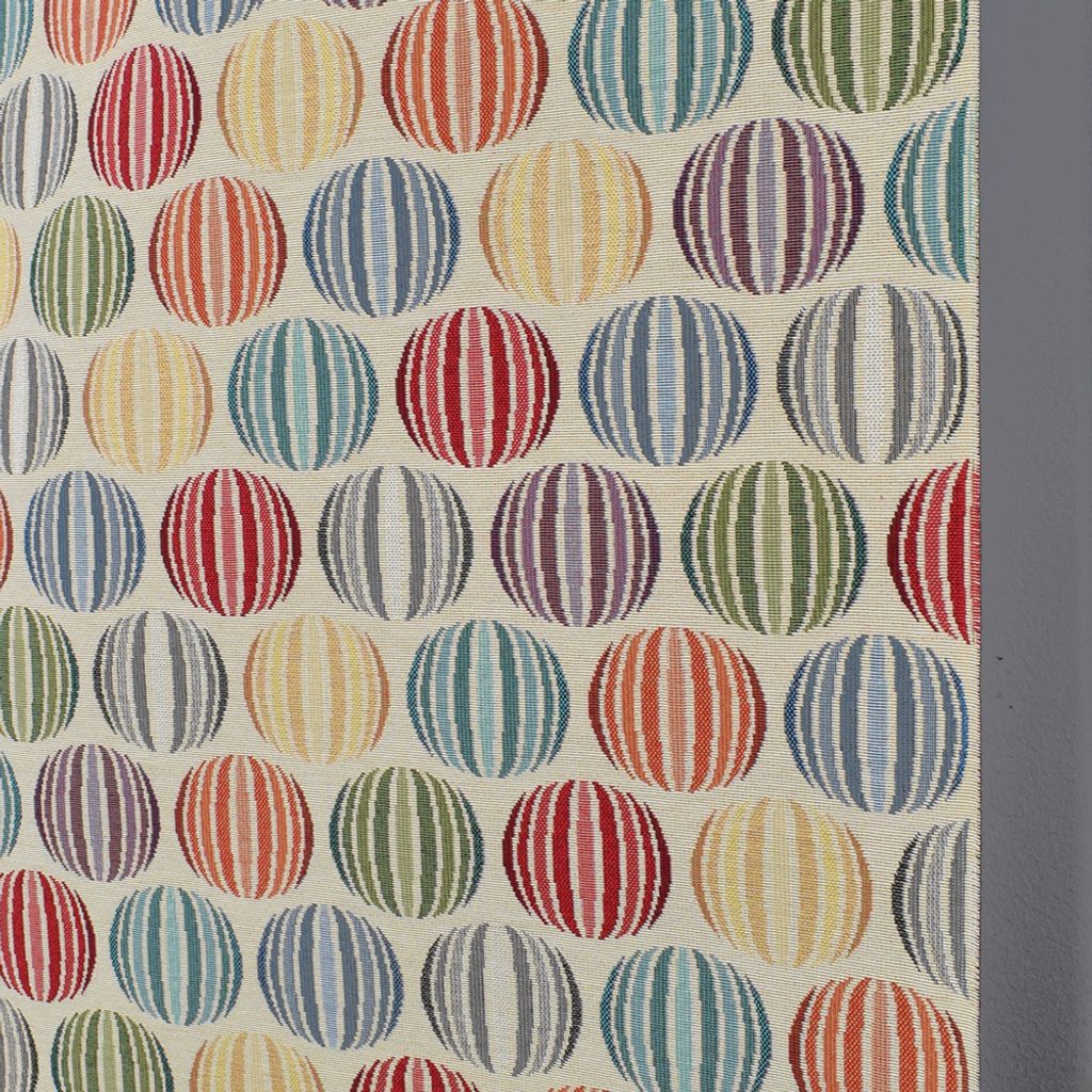 Multifärgat möbeltyg även kallar gobeläng tyg Snyggt mönster på ljus botten och cirklar