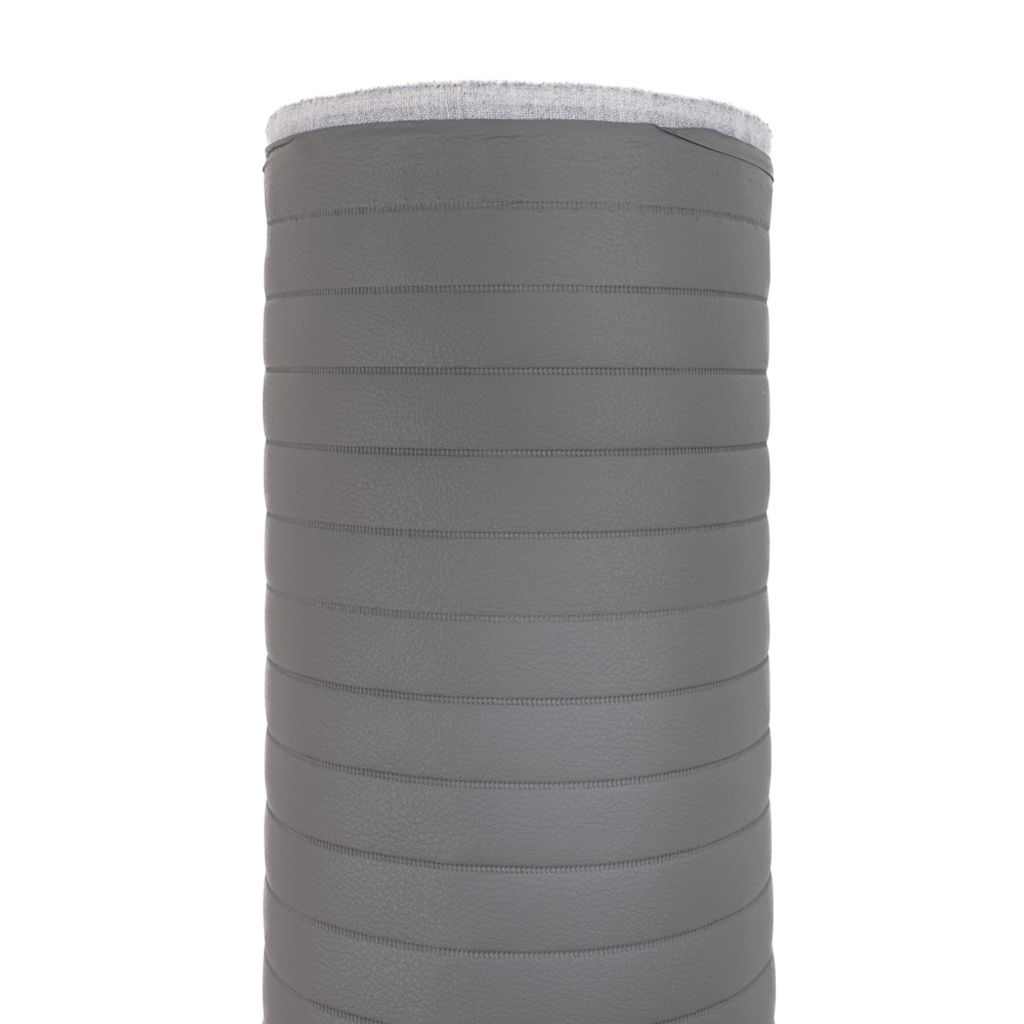 Grått randigt fuskskinn med vadderad baksida.