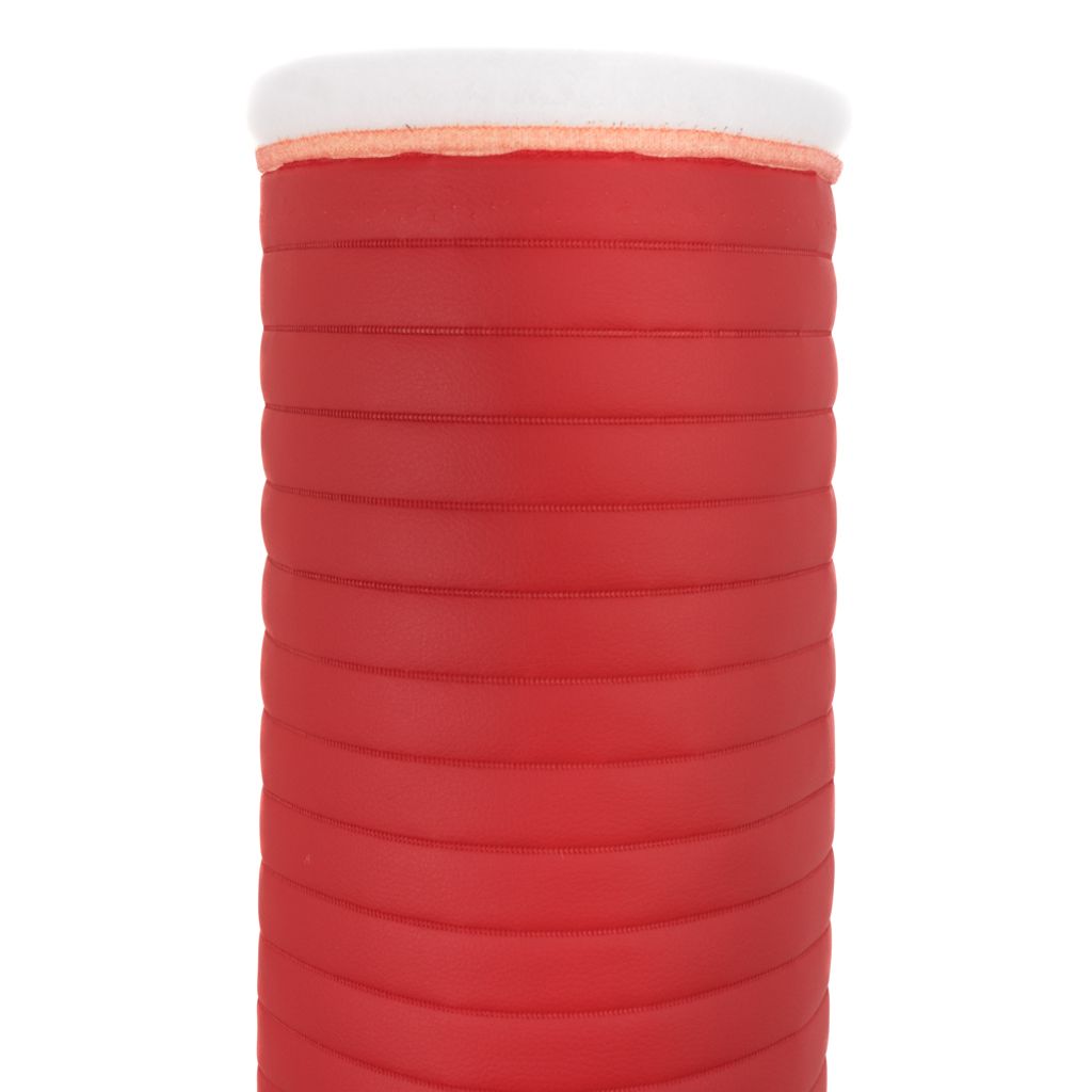 Ett vadderat fuskskinn i rött med ränder.