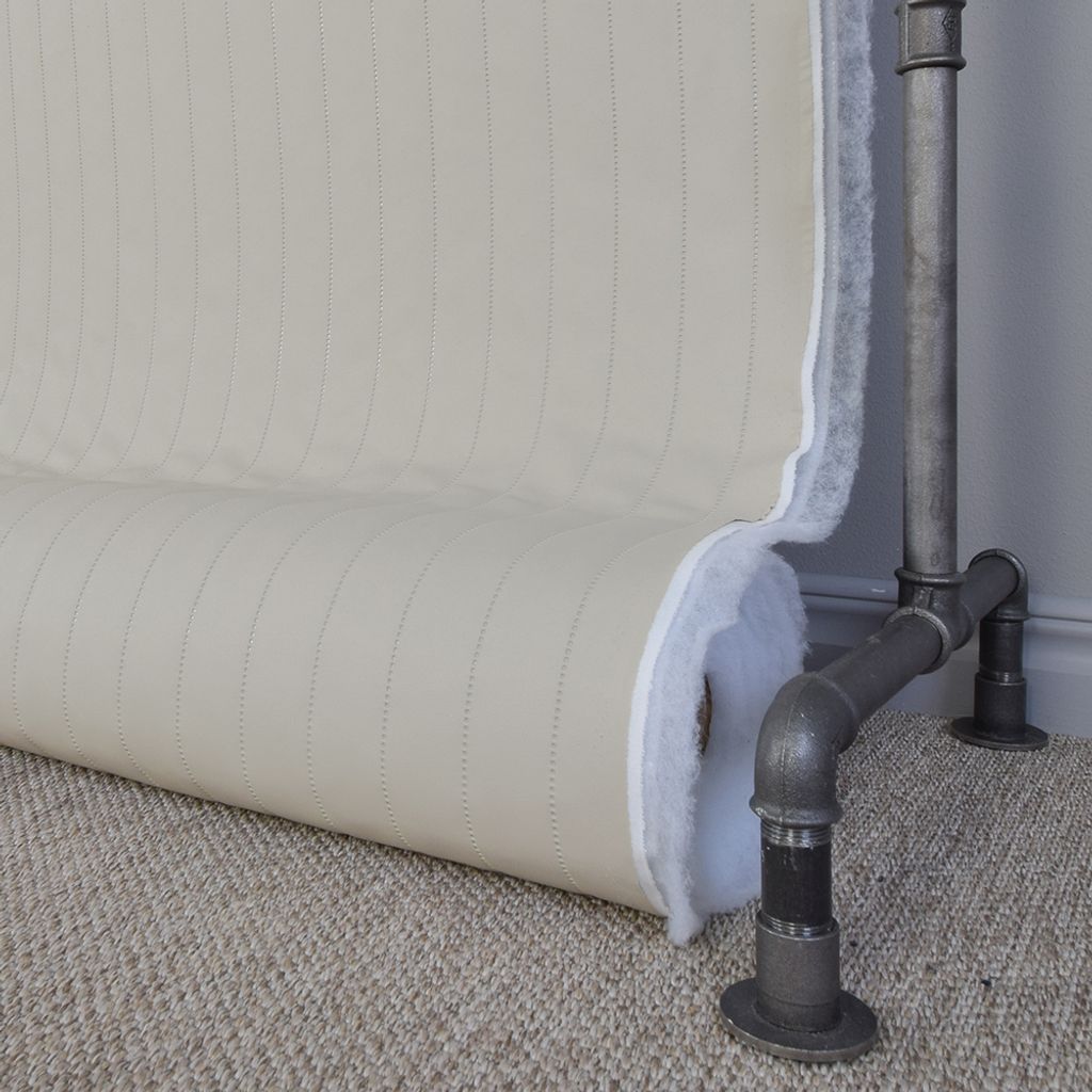 Ett vadderad fuskskinn med ränder i ljust beige. Ränderna är 5cm breda