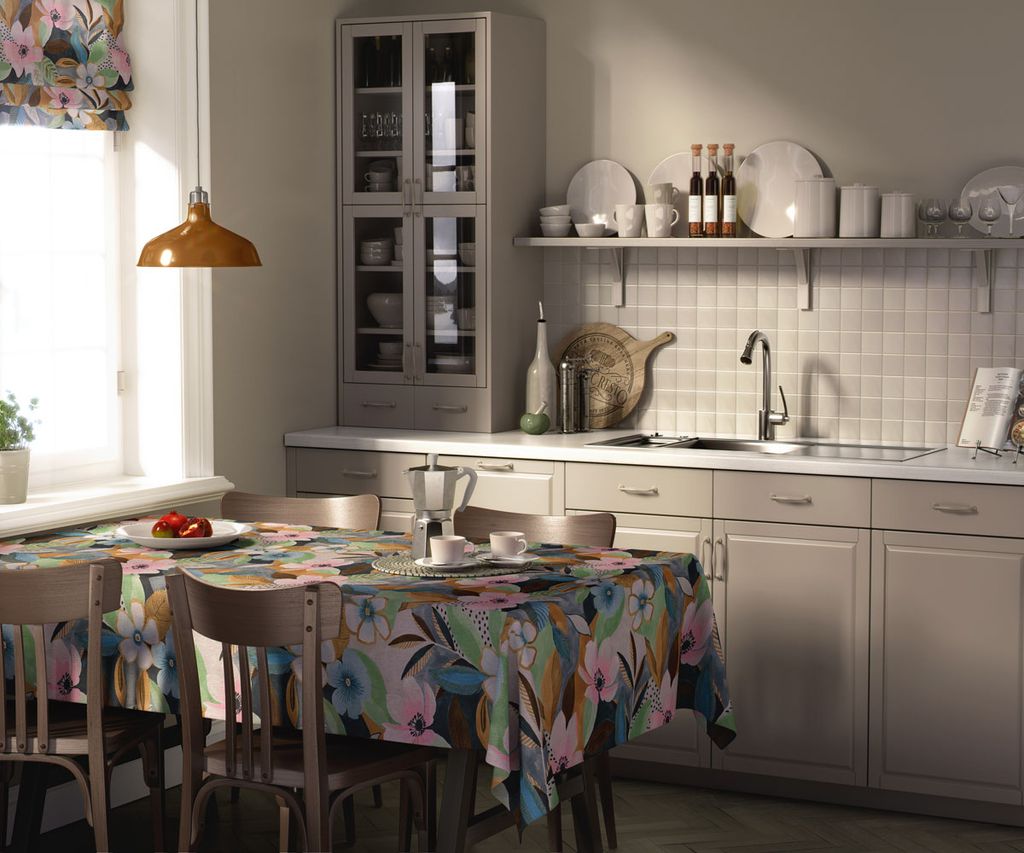 Selena bordsduk kombinerar mjuka pastelltoner med djupa, jordnära nyanser i ett elegant blomstermönster. Perfekt för att skapa en stilfull och harmonisk dukning med en touch av romantik.