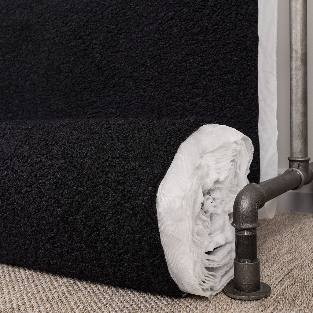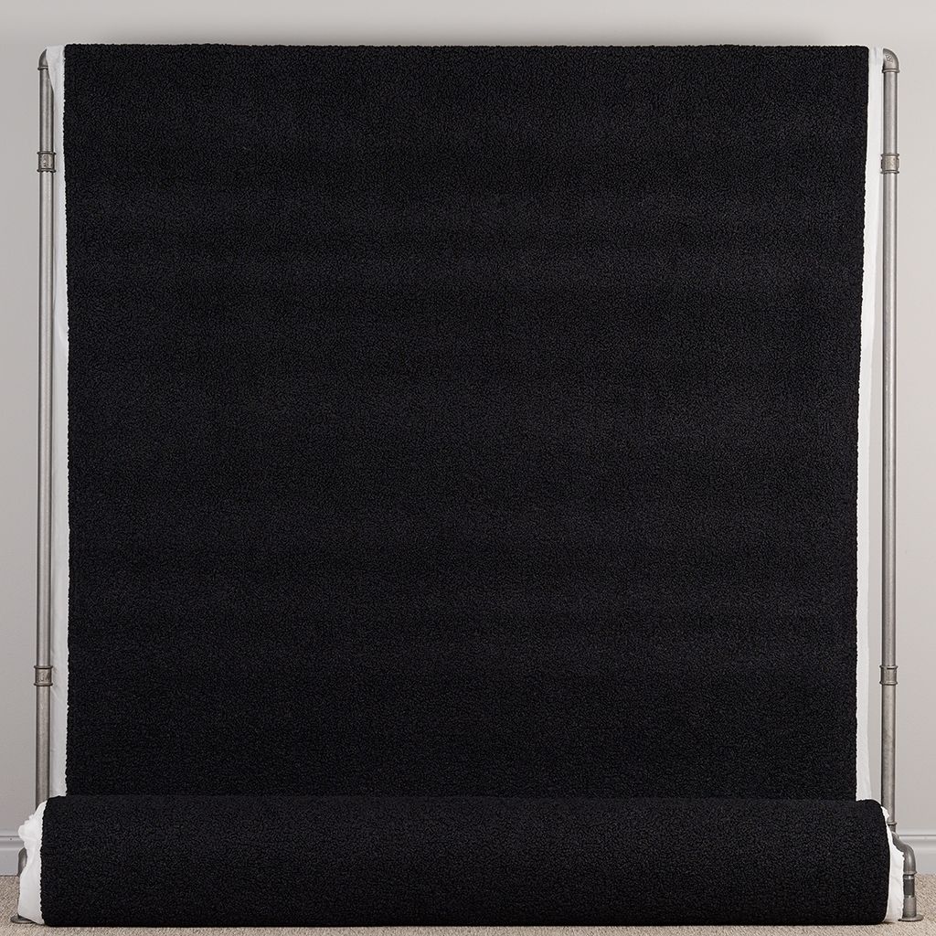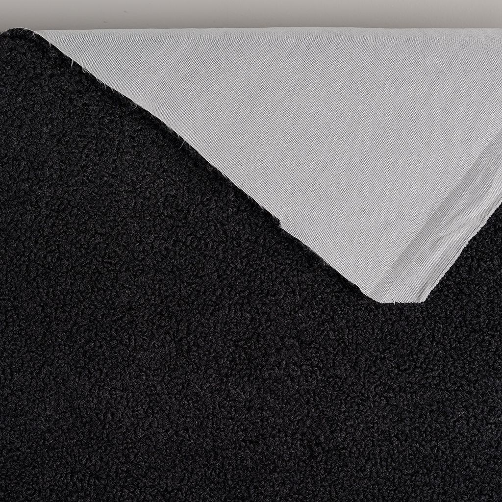 Mjukt och exklusivt möbeltyg i svart med fårpälsstruktur. Ger en varm, ombonad känsla och passar perfekt till både moderna och klassiska miljöer.