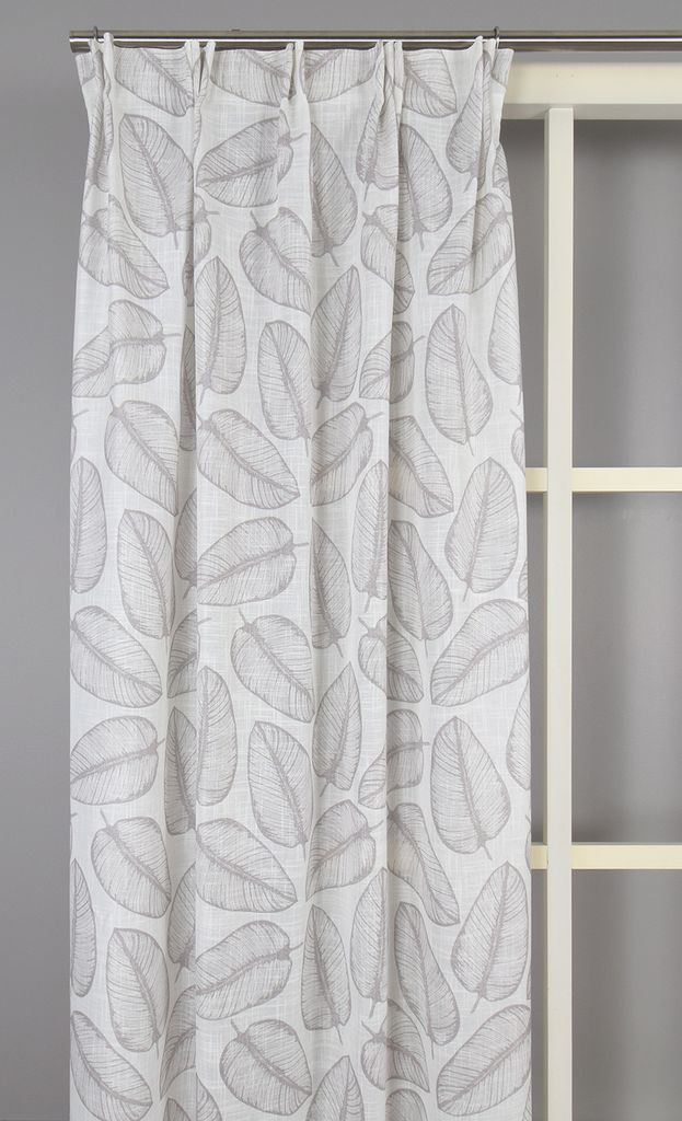 Gardinen är sydd med multiband som gör det enkelt att skapa vackra veck och hänga upp den med fingerkrokar, nålkrokar eller direkt på stång med fingerkrok.