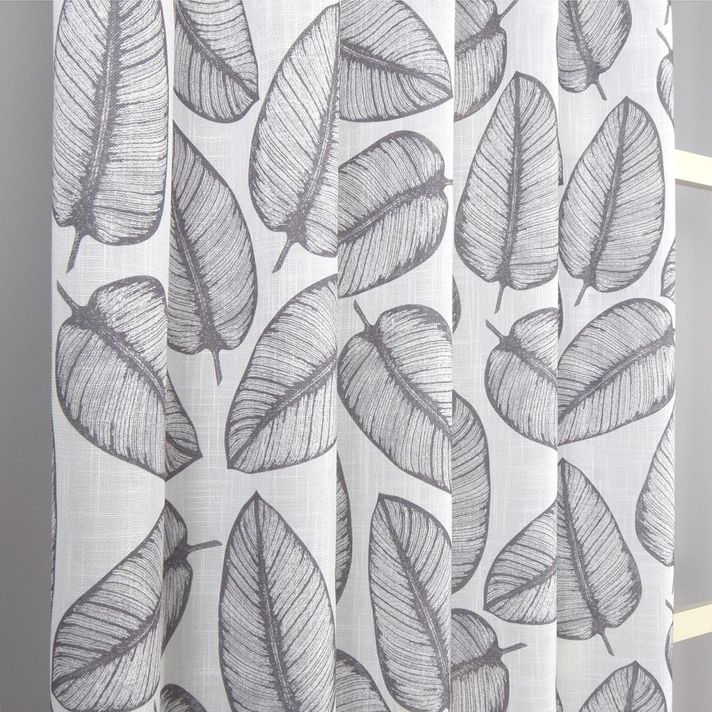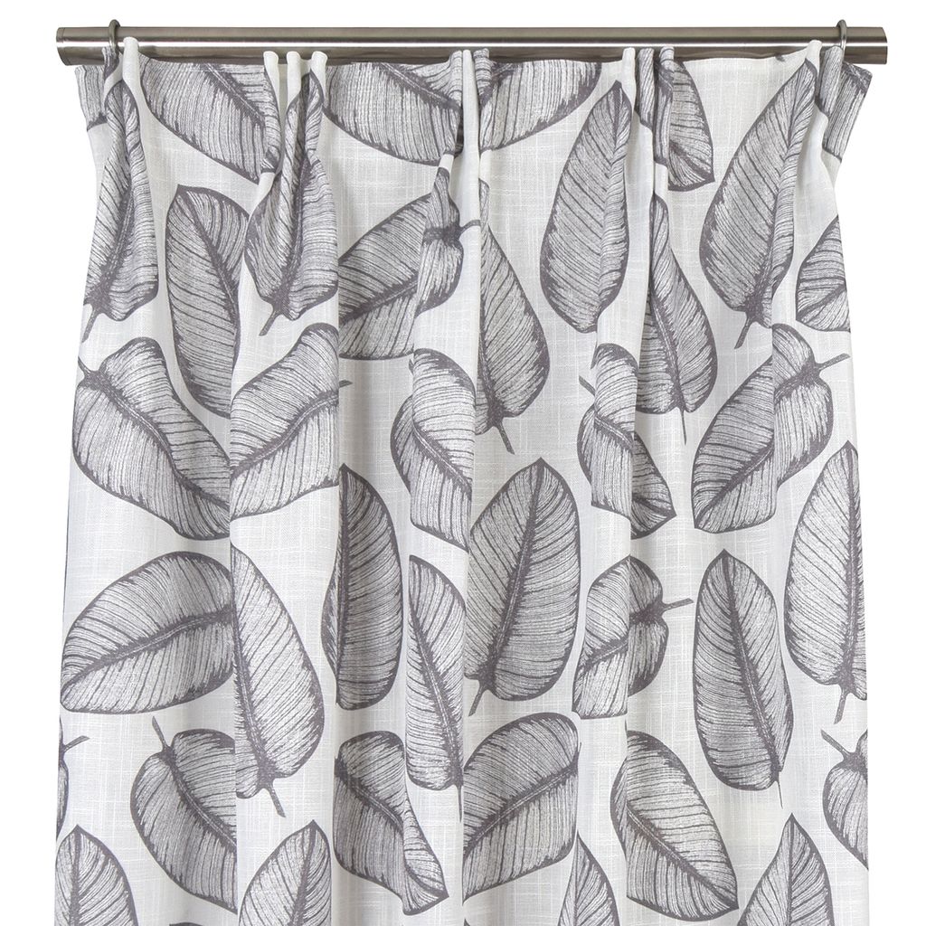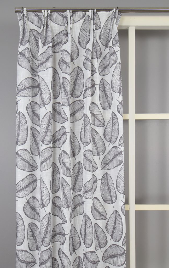Sienna grå gardin är en luftig och stilren gardin med ett mjukt bladmönster i grå toner på vit botten. En perfekt kombination av naturinspiration och nordisk enkelhet. Multiband i 2-pack. Ouppfållad med overlock nedtill.