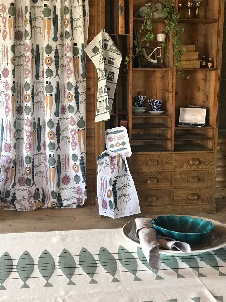 Beskrivning av Sill grön-grå kökshandduk - Almedahls