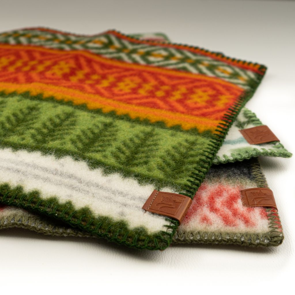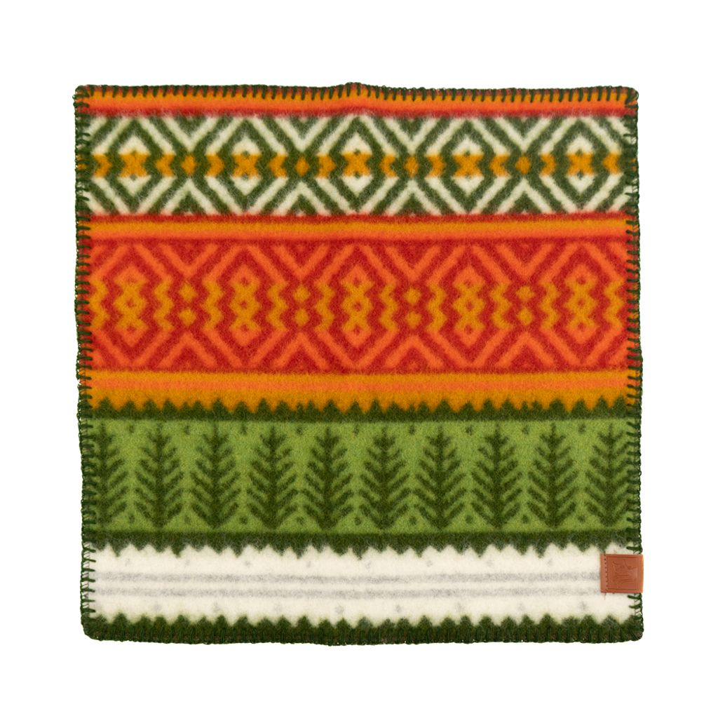 Praktiskt MORA sittunderlag i 100% OEKO-TEX®-certifierad lammull, insperation från Moras folkdräkt och vasaloppet – perfekt för alla utomhusäventyr.