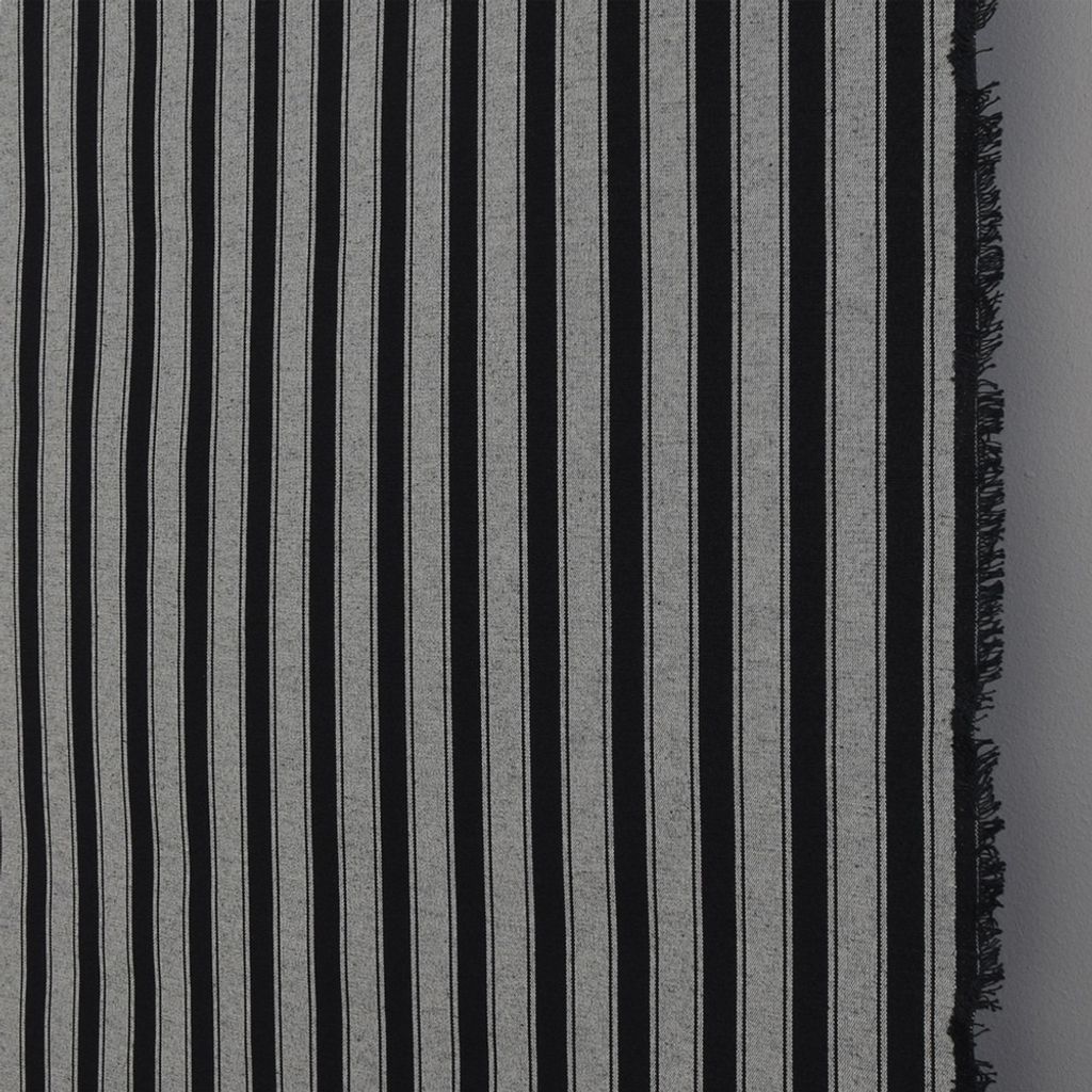 Klassiskt randigt möbeltyg - Sixten svart, perfekt för gardiner och möbler.