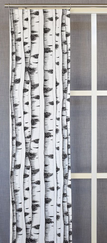 Beskrivning av Skogsbryn panelgardiner med björkstammar