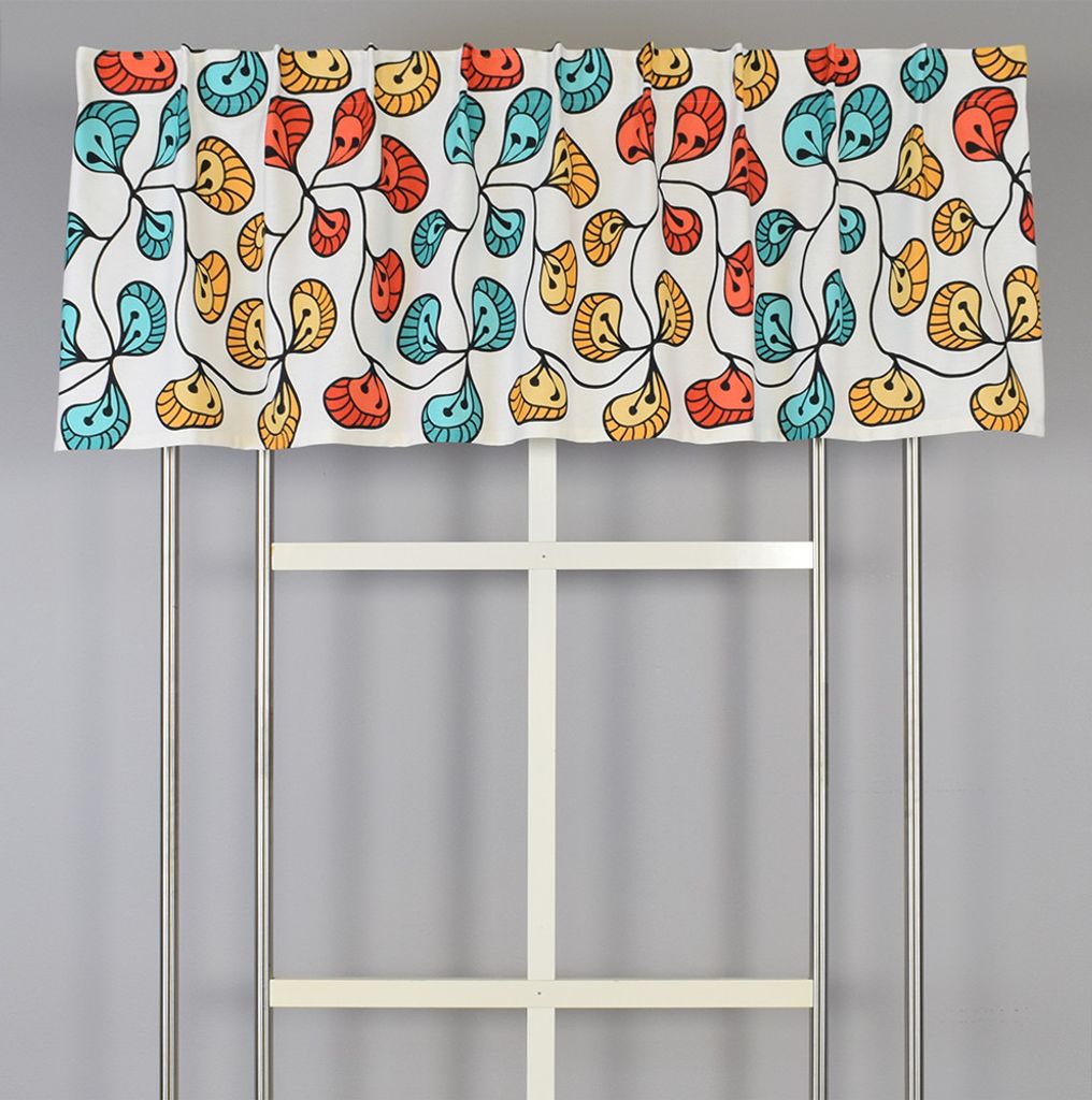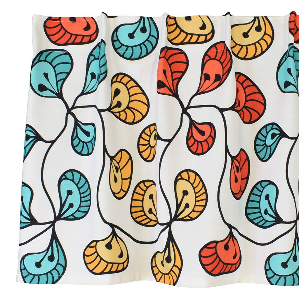 Mönstret är tryckt på ett vitt tyg och det är mest vitt på baksidan.