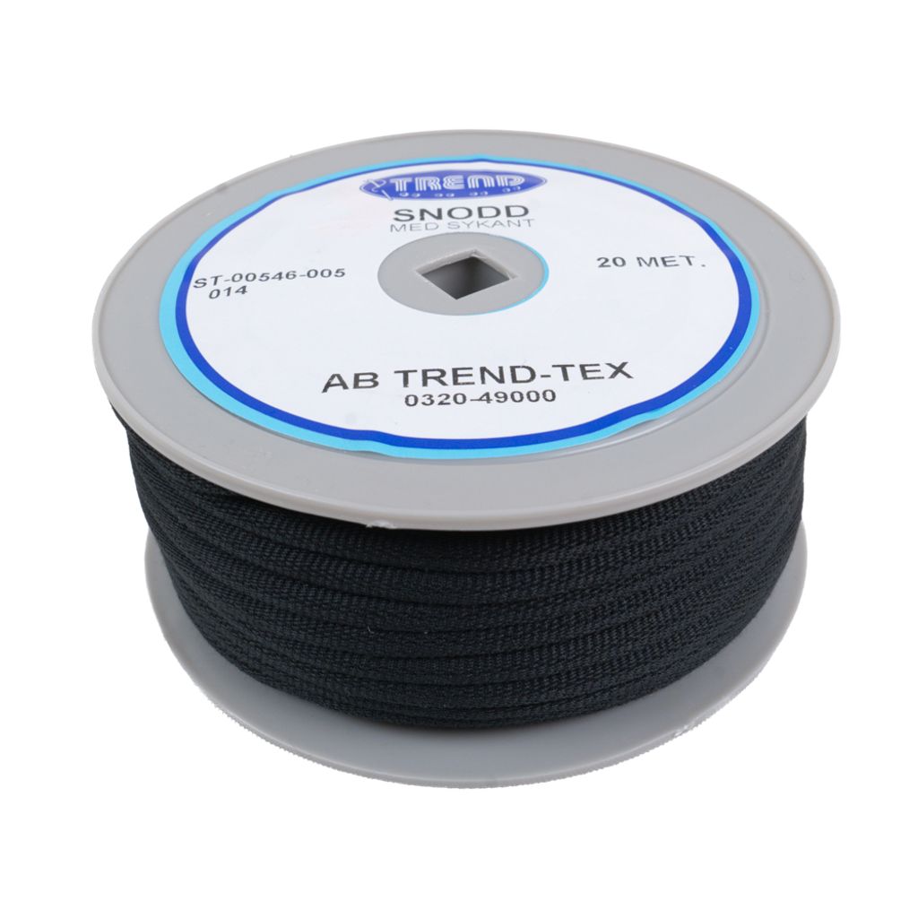 Beskrivning av Snodd med sömnadskant - 5mm Svart