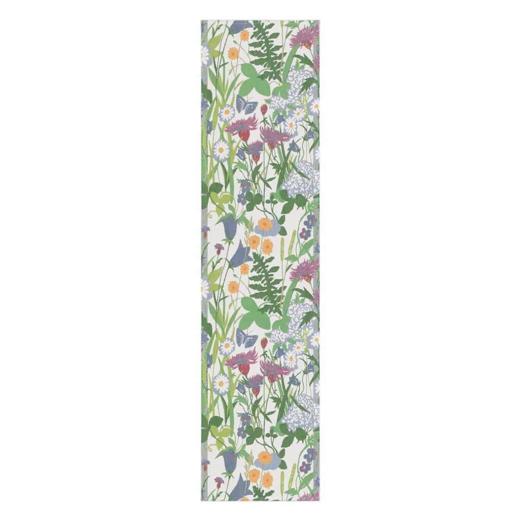 Vår bordslöpare är som en fläkt av svensk sommar med sitt blomstrande mönster och ansvarsfullt valda ekologiska material. En perfekt mix av stil och hållbarhet som är GOTS-certifierad.